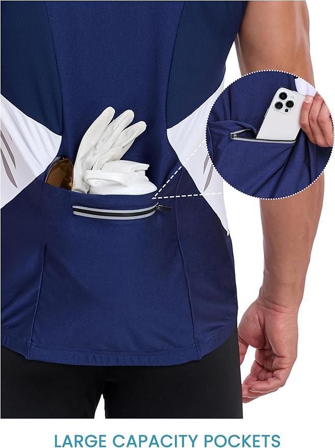- UTILITY POCKETS: 3 open rear pockets and 1 zipper rear pockets to hold your items like cards, smartphone and hand towel when cycling or running