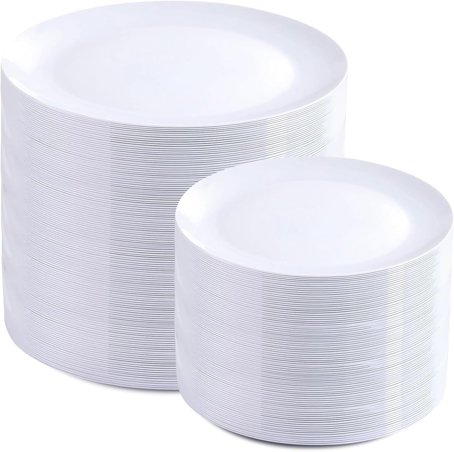 - SUFFICIENT QUANTITY: A pack of 200 white plates disposable, including 100pcs 7-inch dessert plates,100pcs 10-inch dinner plates, which is enough for most occasions. Stock up on white party plates for all your future events and enjoy the convenience of carrying disposable dinner plates with you.