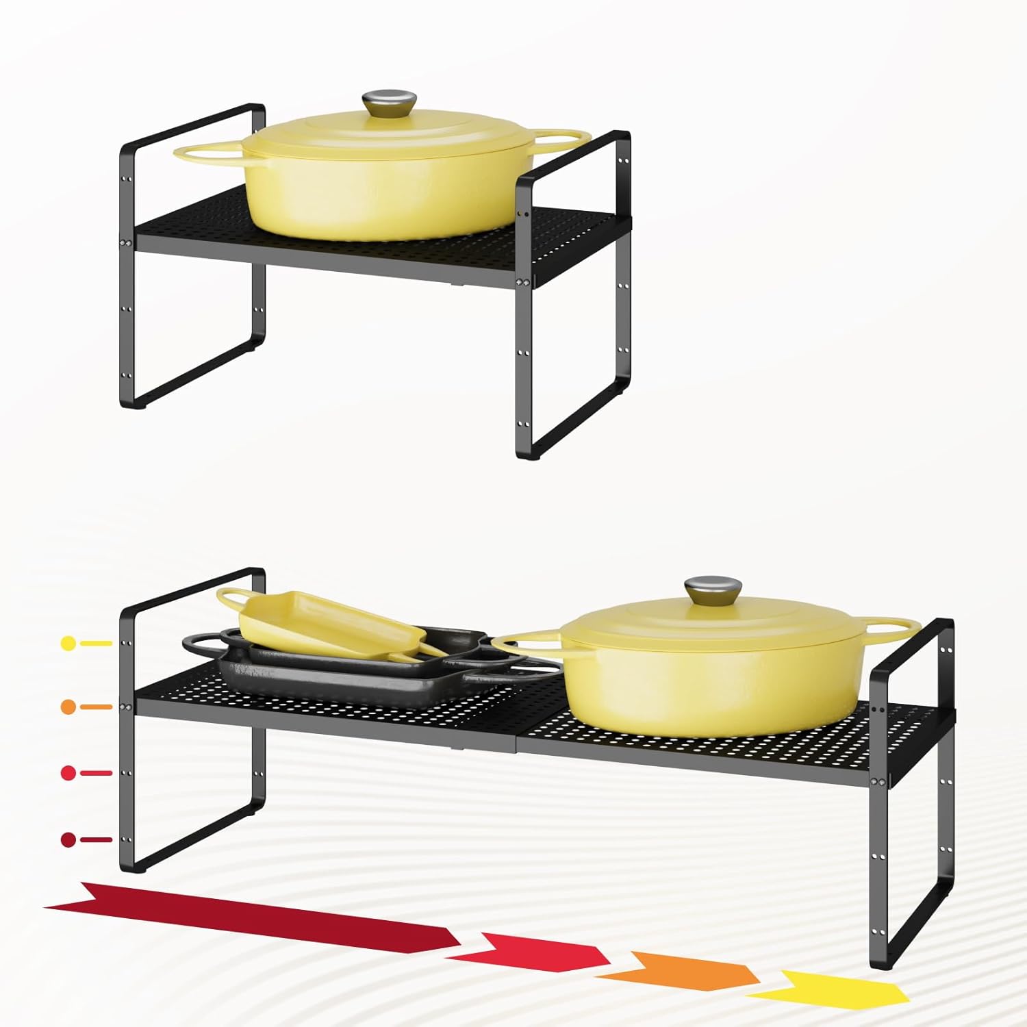 - Wide Range of Use:Cabinet shelf organizers can be stacked and used, one or more combined together. They can be placed in cabinets, food cupboards, on kitchen countertops or under the sink.