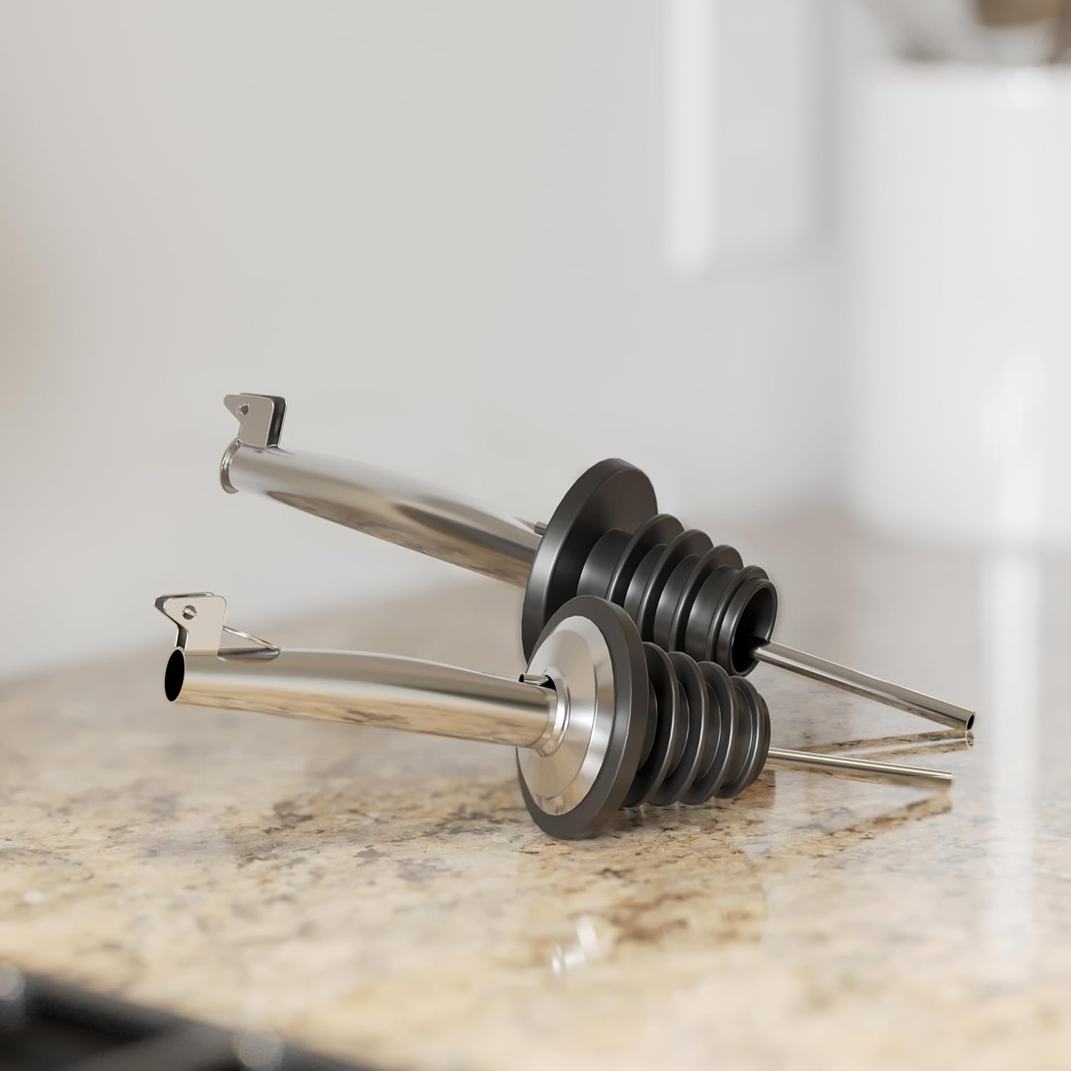 New England Stories Kitchen Cooking Oil Dispenser Set, Olive Oil and Vinegar Bottles, Soy Sauce Dispenser - 2 Pieces, Silver, Durable & Stylish Design