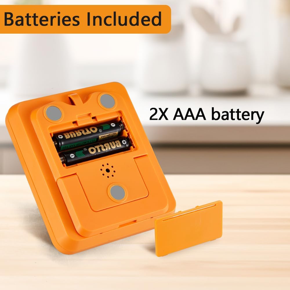 - 【MULTIPLE PLACEMENT OPTIONS】: The kitchen timer digital has strong magnetic back, retractable stand and hanging hole, it is convenient to place in three ways especially its 3 STRONG MAGNET working fine on the refrigerator.