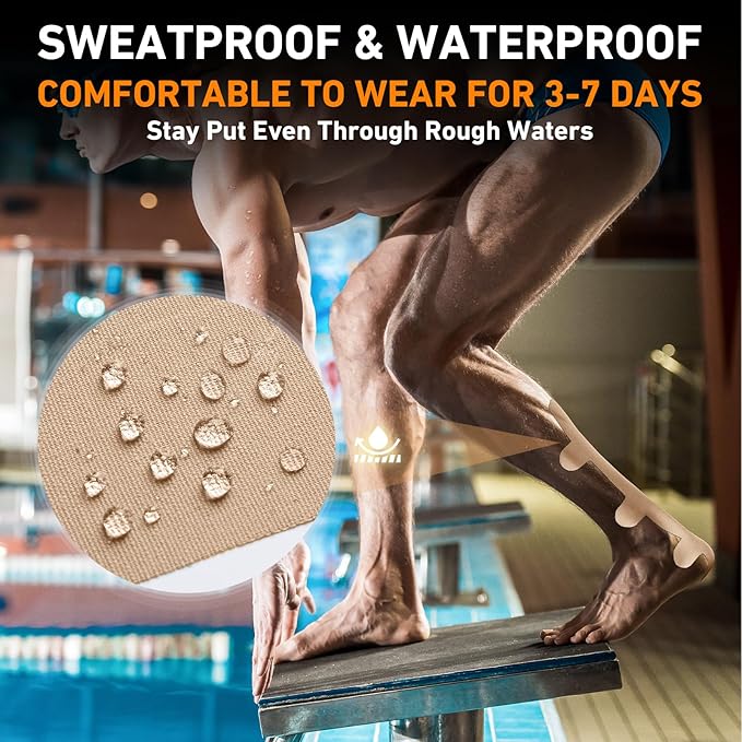 - 💧 Durable Waterproof Material for Every Workout — Built with upgraded waterproof technology, our athletic tape for achilles tendon stays firmly in place during intense workouts or even swimming sessions.