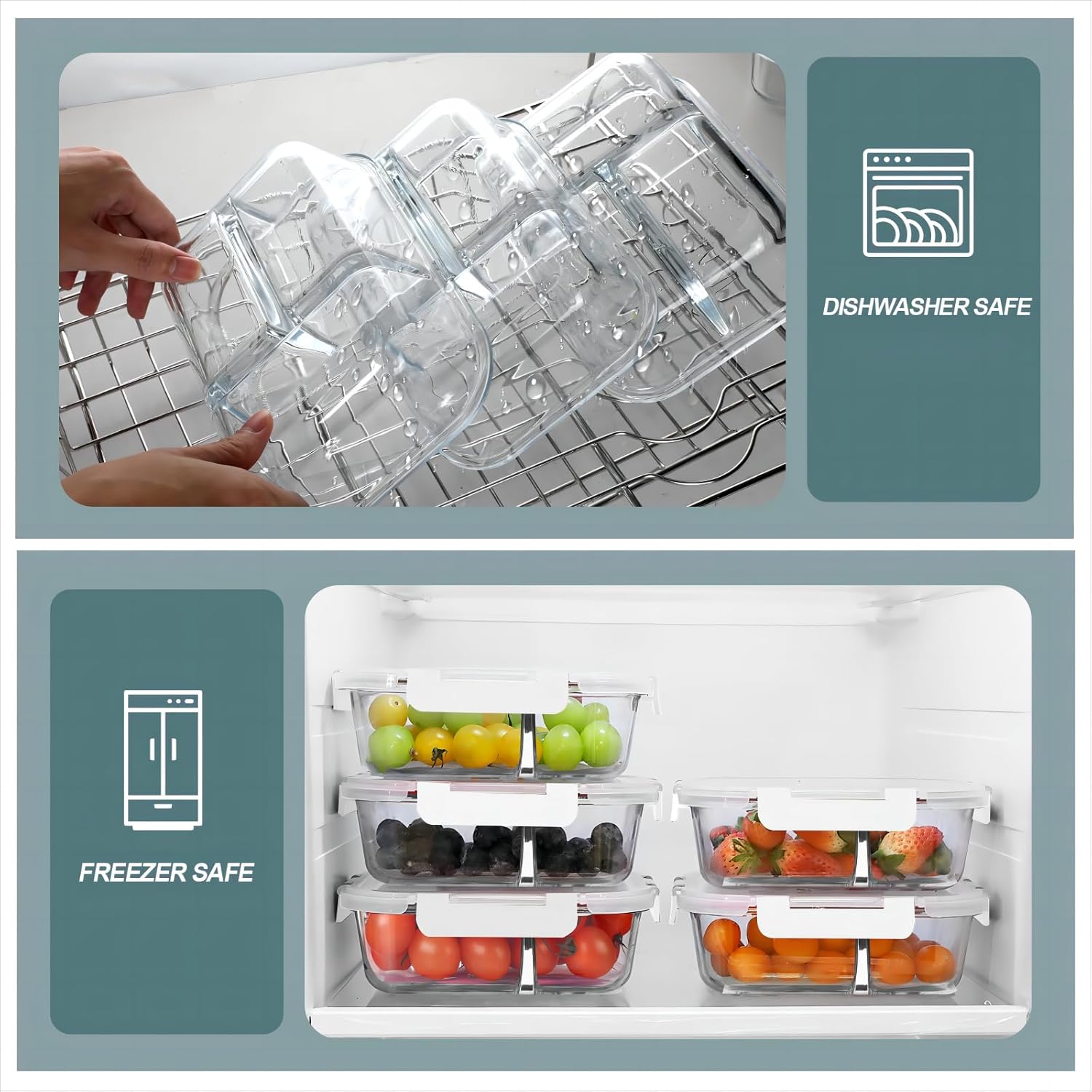 - HIGH QUALITY GLASS: Made from premium borosilicate glass, our meal prep containers are freezer, microwave and oven safe. The sturdy glass won’t stain, warp, or absorb odors, providing durability for storing and reheating your meals. Note: Please remove the lid before heating.