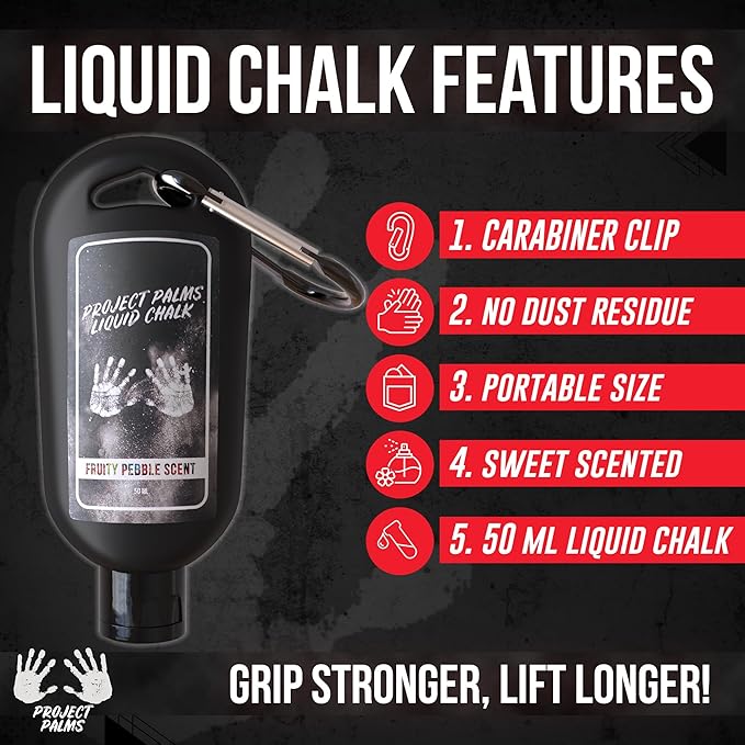 - Mess-Free & Fast-Drying: Project Palms liquid chalk dries quickly on contact, keeping hands steady without the mess of powder chalk. Ideal for clean, efficient workouts, this formula minimizes dust while providing a reliable hold to keep you focused.