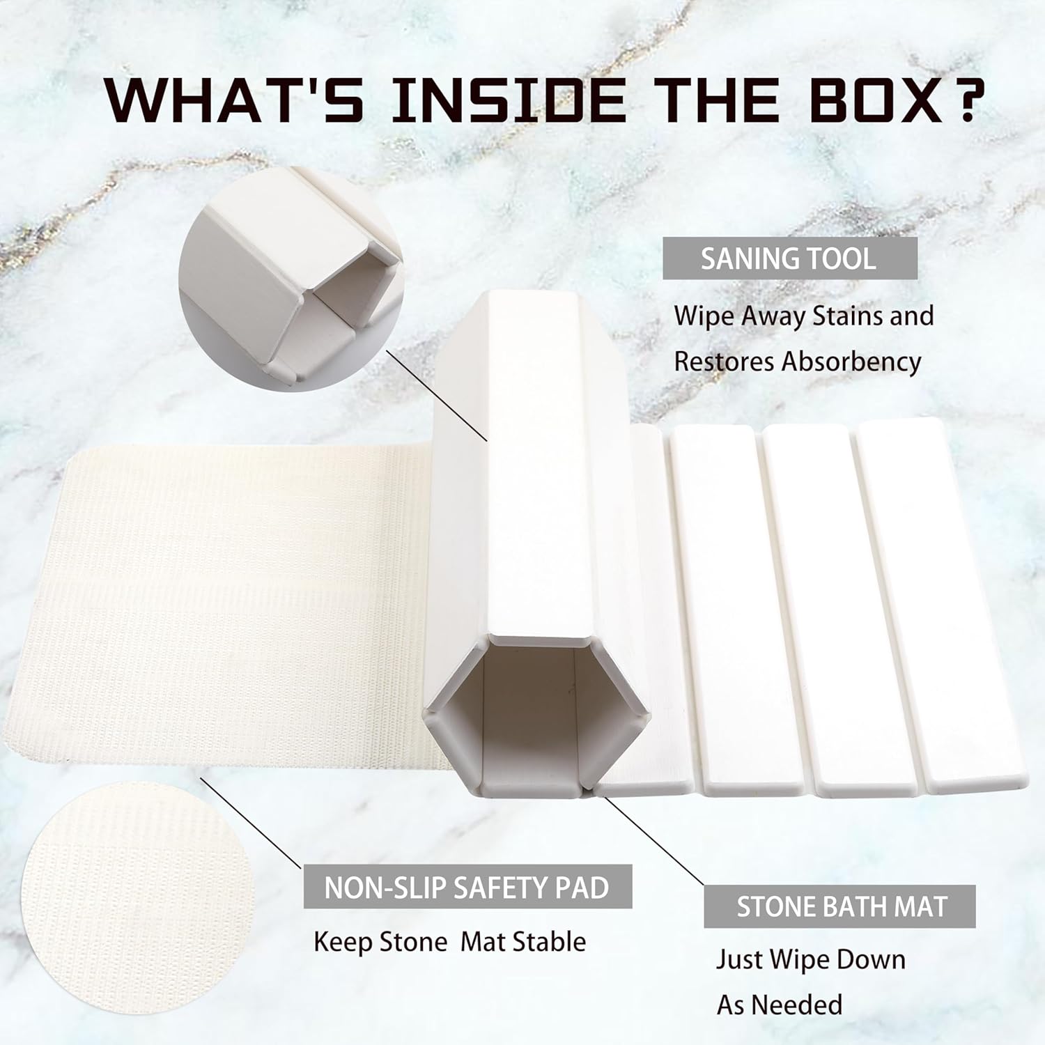 - 【Non-slip Bathroom Floor Mat】This drying pad can also be used outside the bathroom door next to the bathtub, which is both non slip and can quickly absorb moisture.Anti-slip mat can be placed under the diatomite stone bathroom mat to prevent the mat from sliding on wet ground. Give it a good grip on the floor and keep it in place. The texture on the surface of the shower stone mat increases friction. Please note that the bathroom mat must be placed on a solid and flat surface.