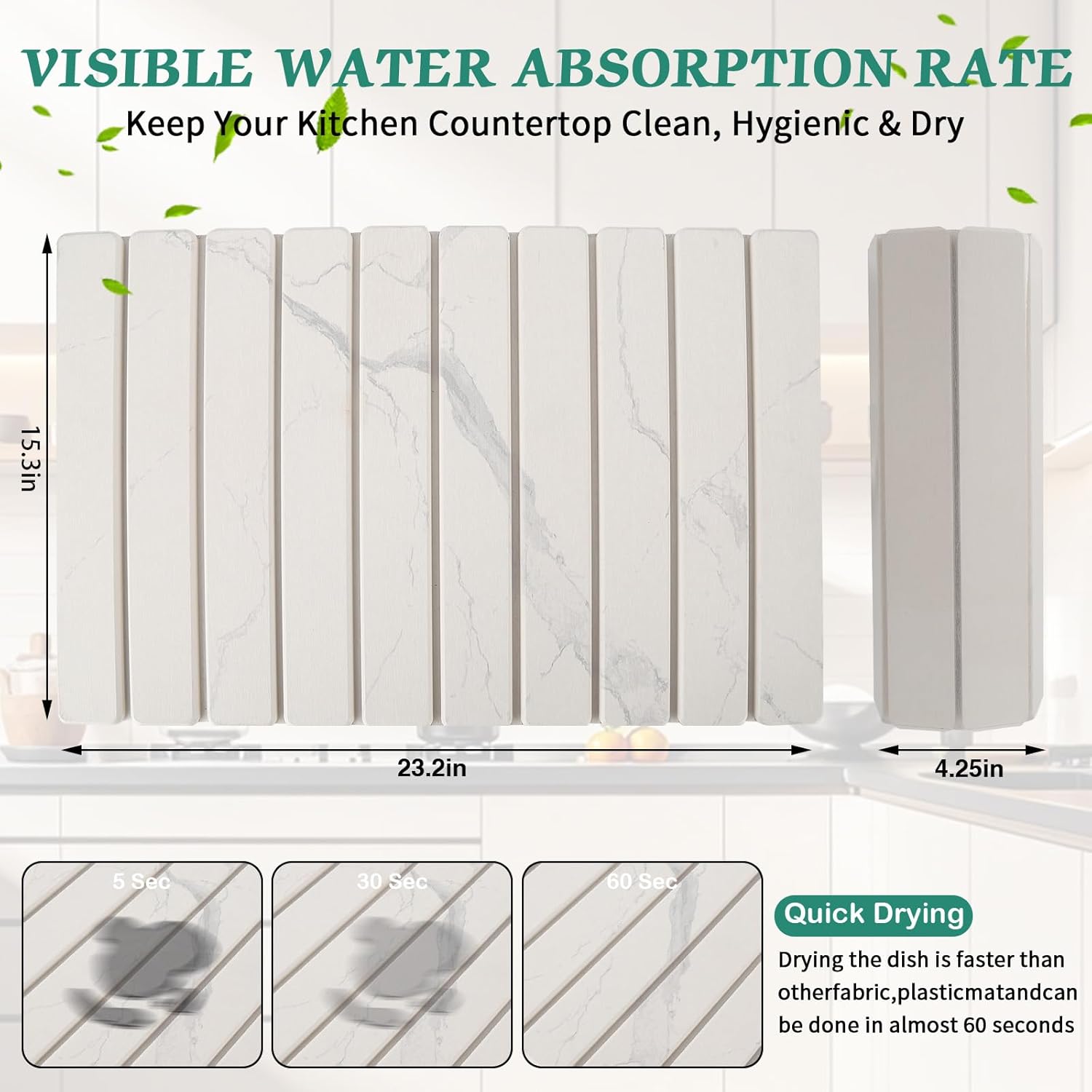- Quick Water Absorption: Diatomaceous earth material absorbs water quickly and can quickly absorb moisture from the surface of dishes to keep the kitchen countertop dry
