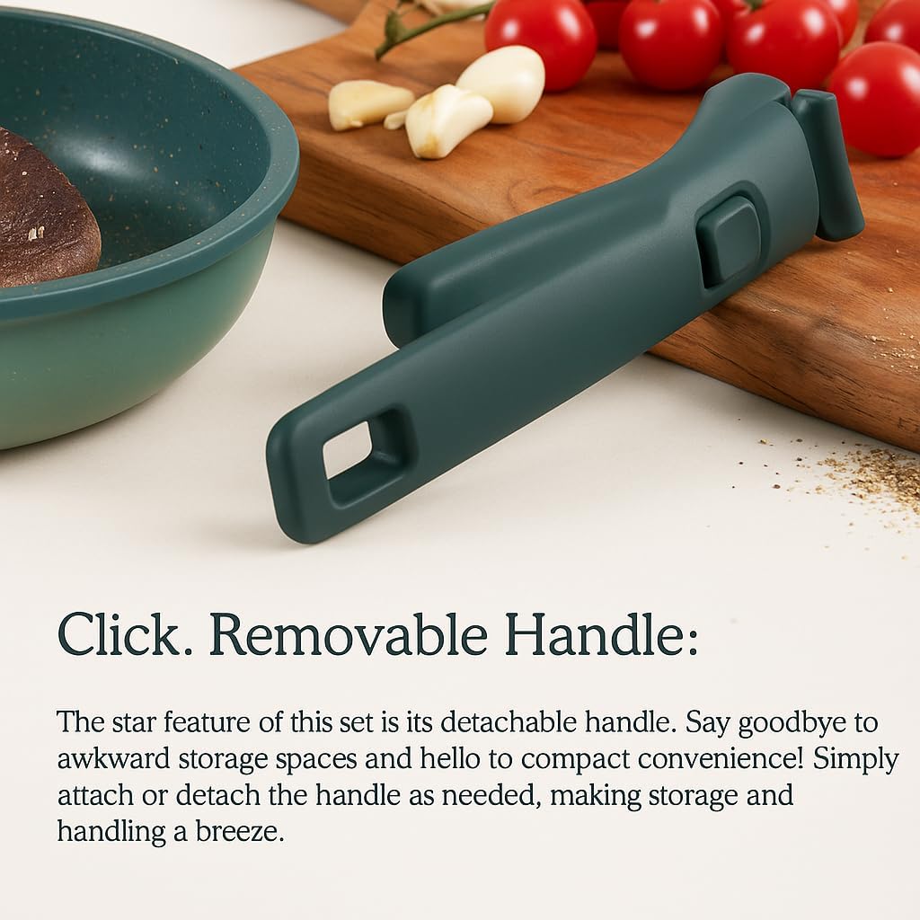 - Removable Handle: The star feature of this set is its detachable handle. Say goodbye to awkward storage spaces and hello to compact convenience! Simply attach or detach the handle as needed, making storage and handling a breeze.