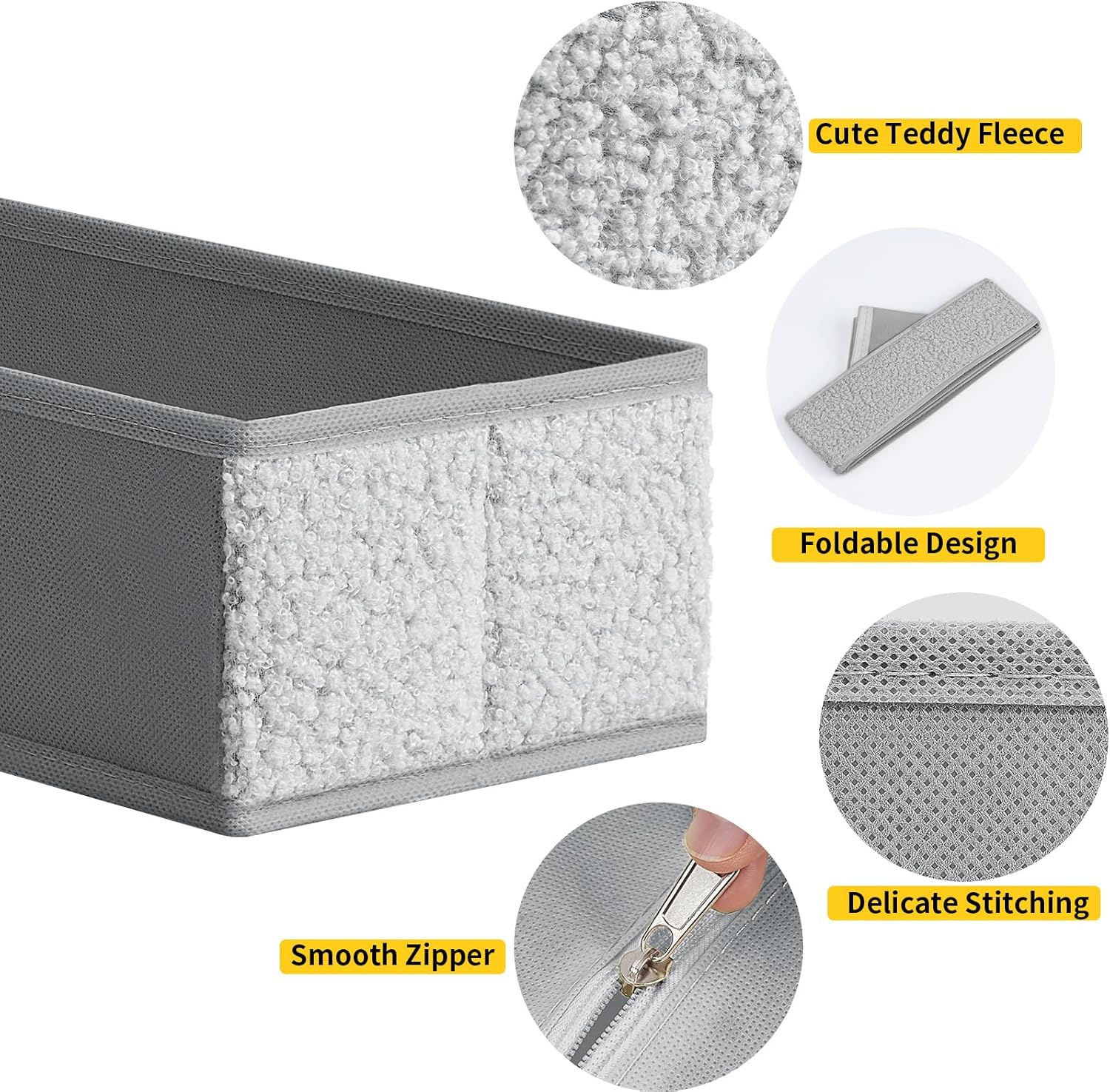 - [Teddy Fleece Design] One side of the clothes drawer organizer features soft teddy fleece, adding warmth and charm. Available in various colors to match different decor styles. Kindly note: To allow for easy folding, the teddy fleece is only on one side of the clothing drawer organizer