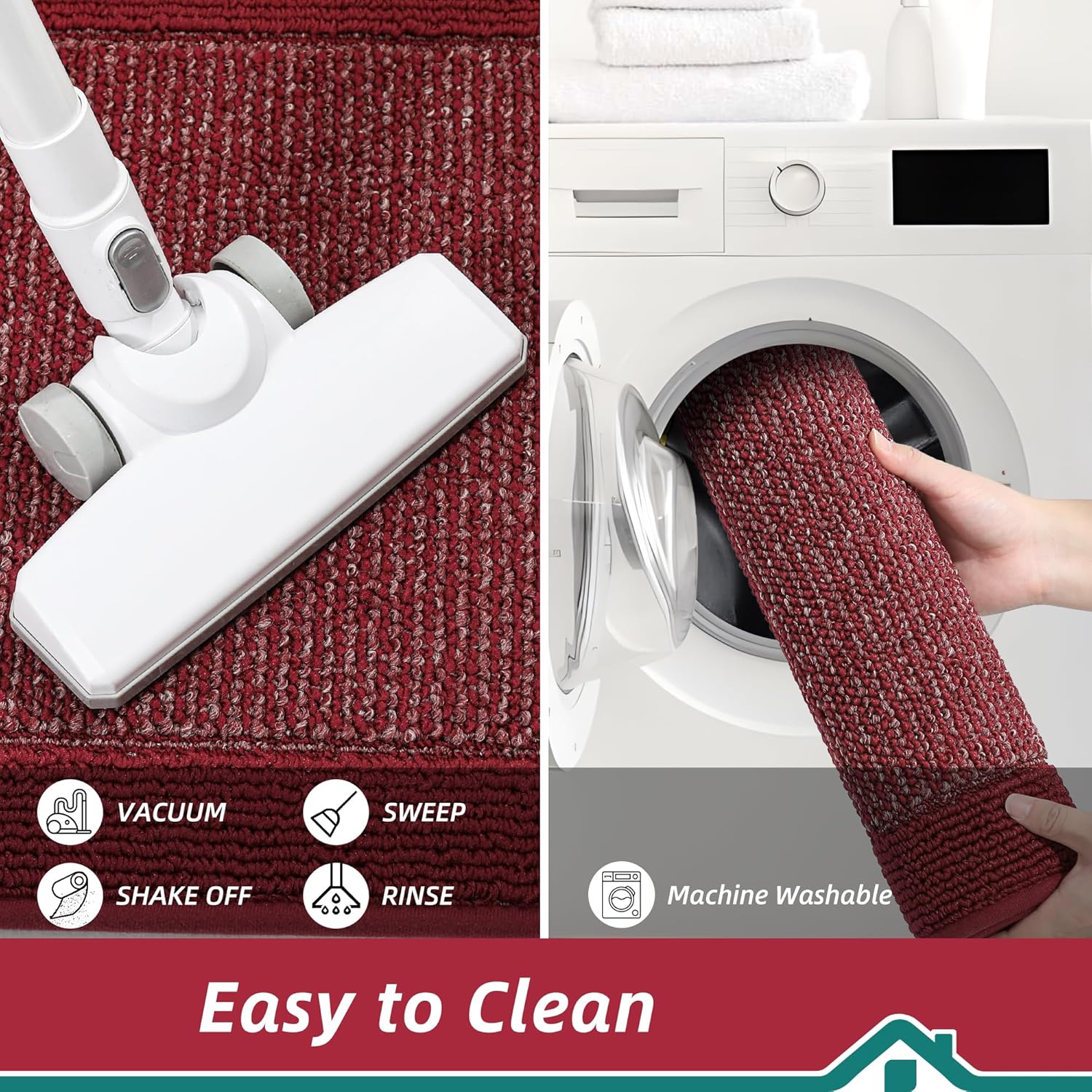 - Easy to Clean: The stain and fade resistant kitchen runner rug can be easily cleaned by a broom or vacuum cleaner. For a deeper clean, machine wash separately in cold water, using mild detergent. Tumble dry, low heat. Do not use bleach or fabric softener