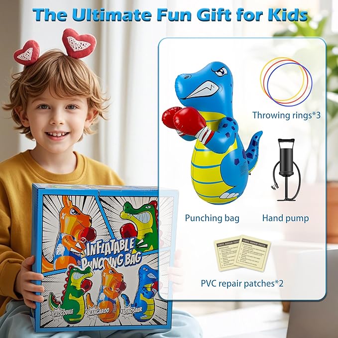 - Perfect Gift for Kids: Looking for the perfect gift for birthdays, Christmas, or other special occasions? This inflatable dinosaur punching bag is an exciting, interactive toy that will make any child’s day. It promotes physical activity while providing endless fun and excitement.