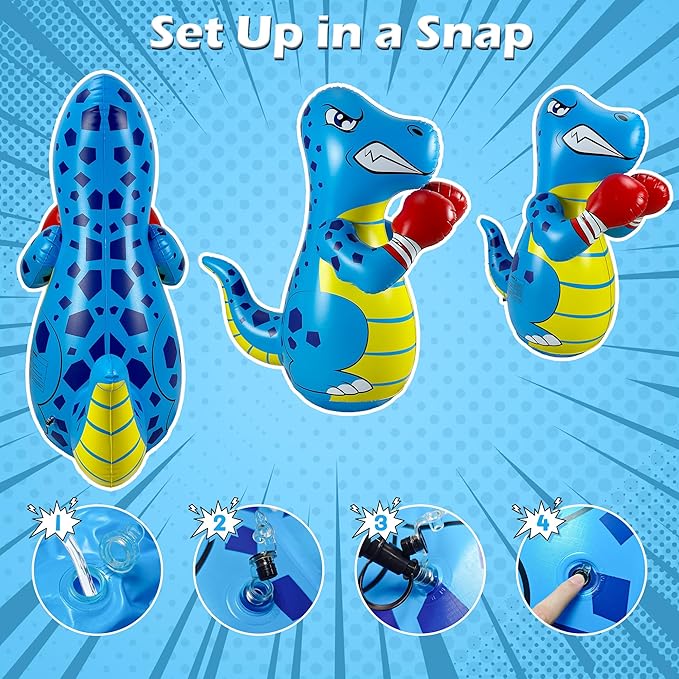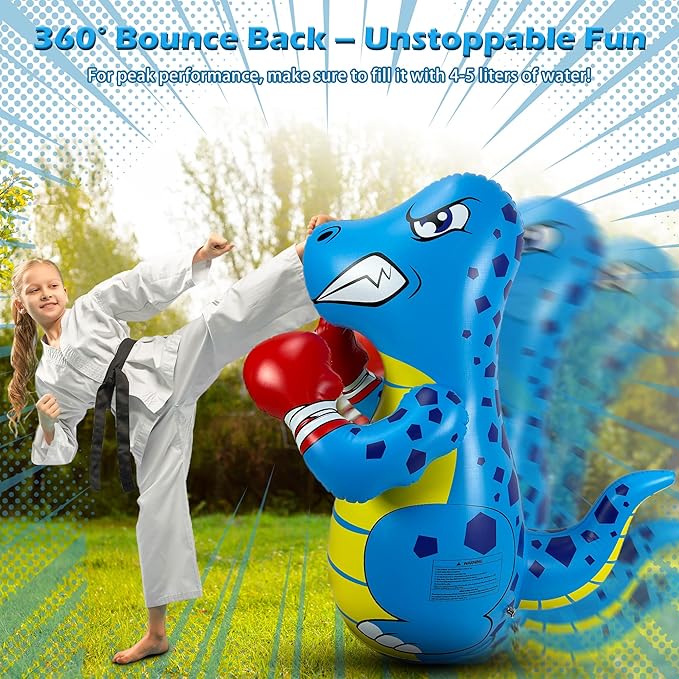 - Durable & Safe Materials: Constructed from premium, thick vinyl, this inflatable dinosaur punching bag is built to withstand high-energy play. The kid-safe, non-toxic material ensures your child’s safety while providing hours of active fun.