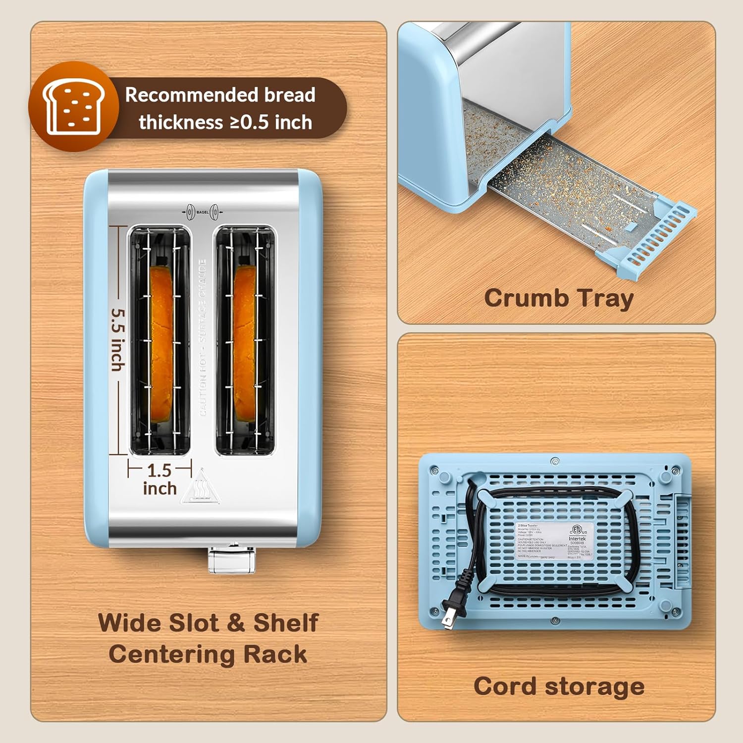 - 【Easy to Clean and Maintain】: The non-stick, food-grade stainless steel slots and a removable crumb tray make this 2-slice toaster easy to clean. Keep your kitchen mess-free with minimal effort and enjoy a hassle-free toasting experience.
