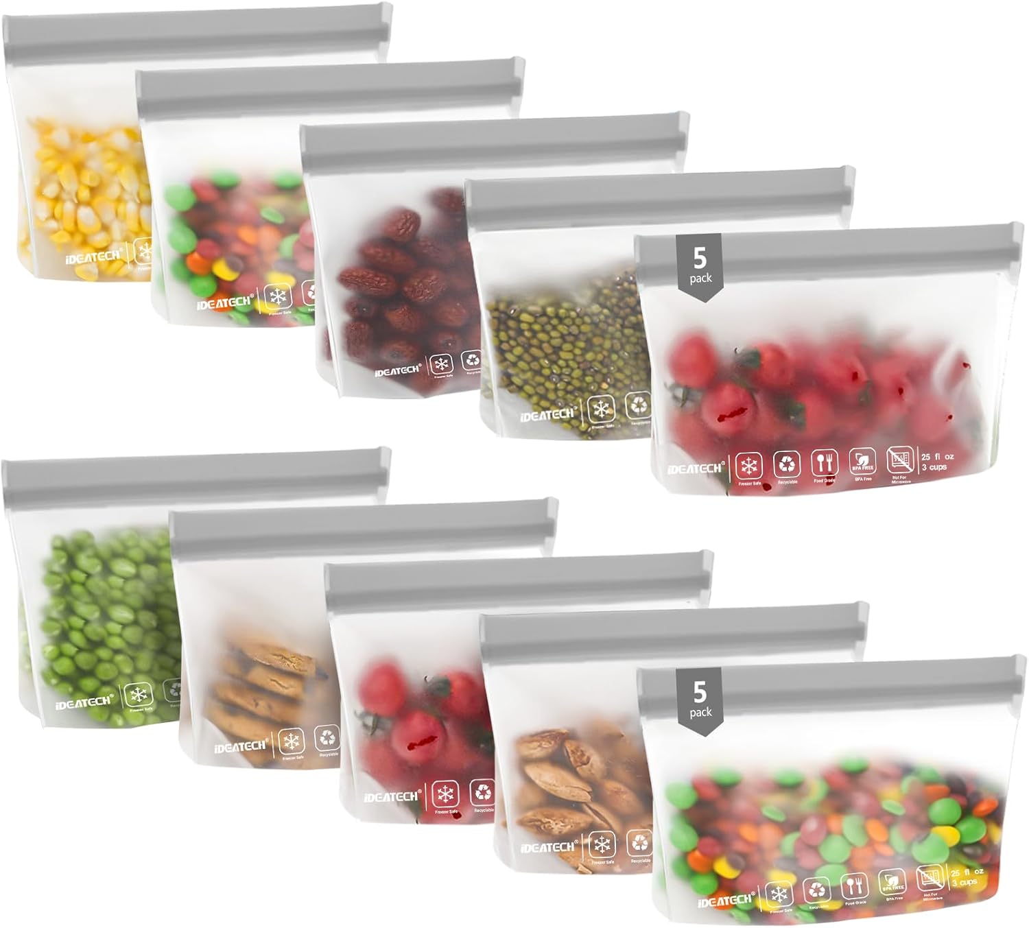- Dishwasher Safe & Easy to Clean:IDEATECH reusable silicone bags is easy to clean and dry, Simply turn the reusable bag inside out and put it in the dishwasher for easy cleaning then put it on the top rack of the dishwasher and they’re good as new when they come out. But please skip high-temperature functions such as the dishwasher's drying to extend the lifespan of these food bags.
