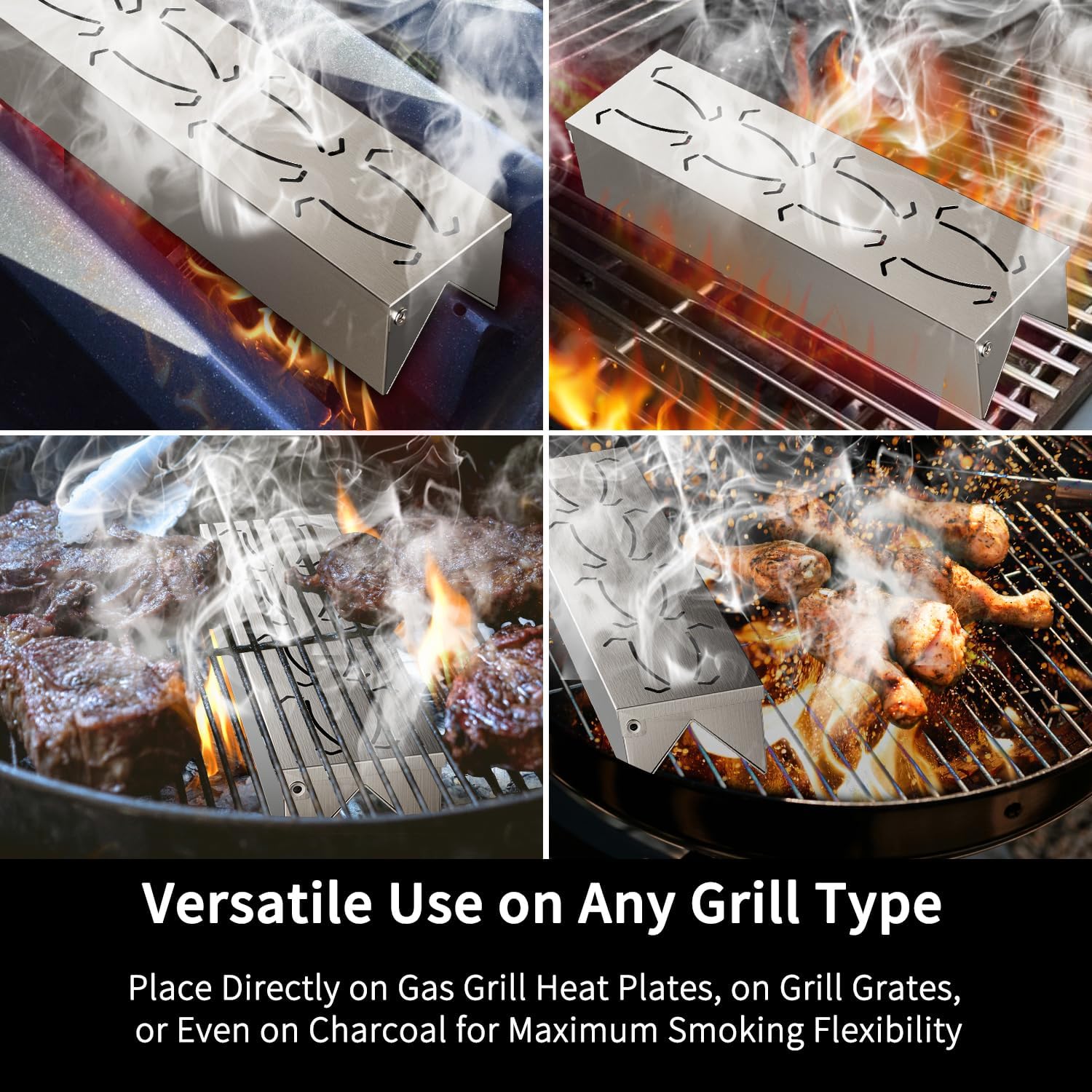 - Exceptional Value with Two Sizes: Get two smoke boxes for the price of one! The set includes a large (12 x 3.3 x 2.5 inches) and a small (11.25 x 3.1 x 2 inches) smoker box for gas grilling, giving you flexible options for all your grilling needs. Perfectly suited for gas, propane, and charcoal grills