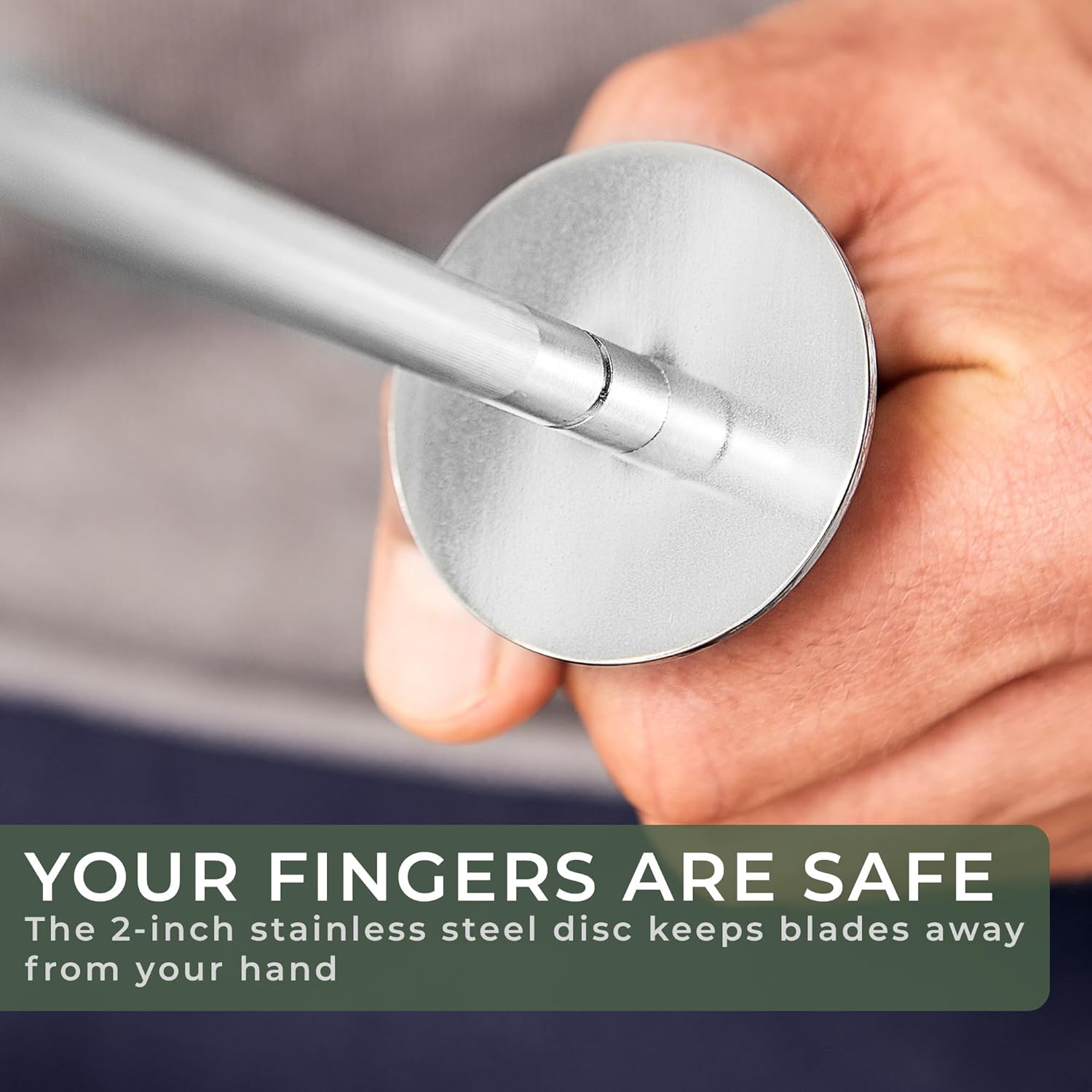 - 🔪 EXTRA LARGE FINGER GUARD – Safety first! Our generously sized finger guard fully protects your hand while sharpening knives, allowing you to work effortlessly and without the risk of injury.