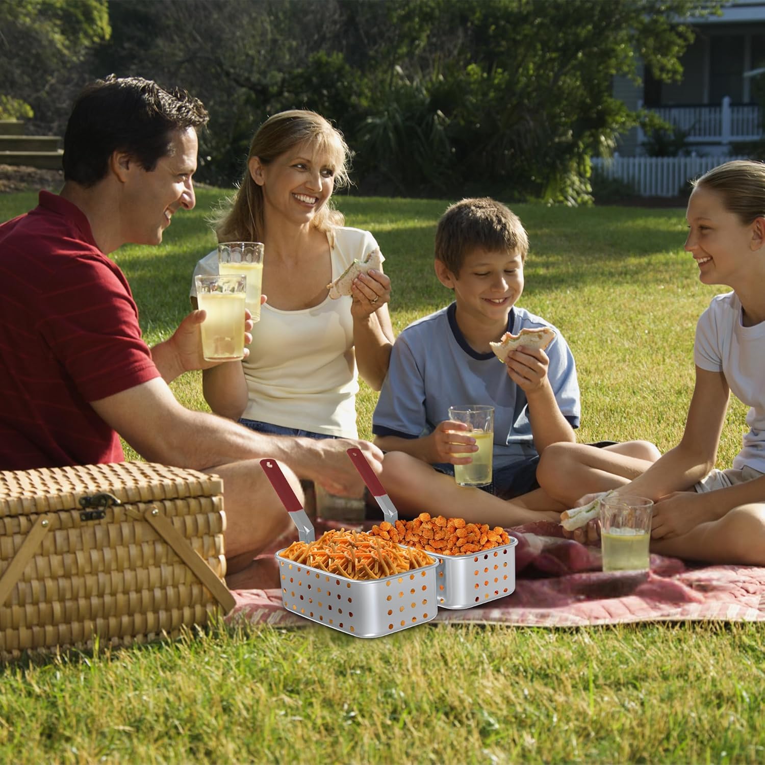 - SAFE AND CONVENIENT DESIGN: Equipped with silicone heat-resistant handles and an ergonomic grip, our fryer basket minimizes the risk of burns and slips. The efficient draining basket design helps eliminate excess oil, resulting in crispier, healthier meals with less greasiness.