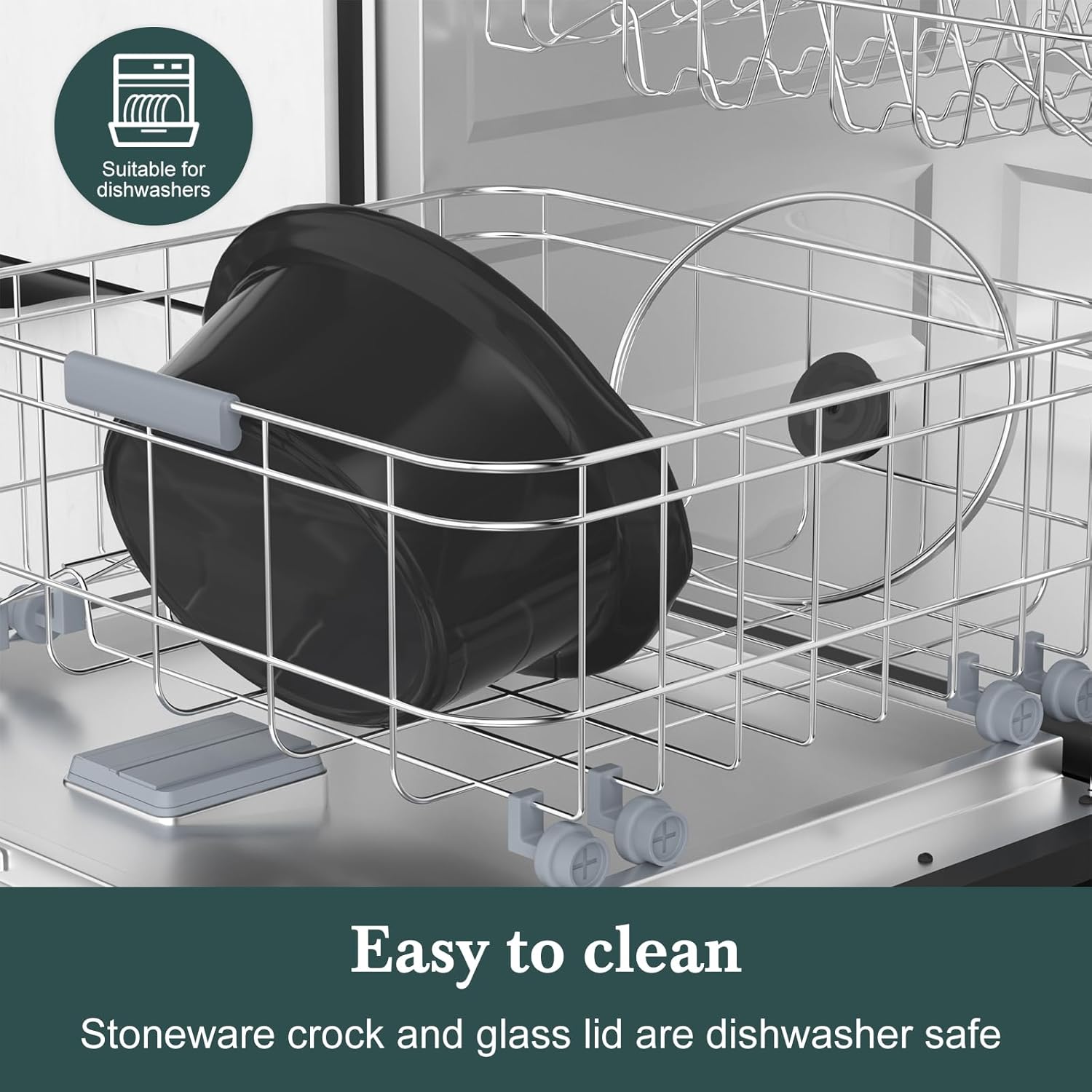 - Maintaining the cleanliness of kitchen appliances can be a daunting task, particularly after a busy day. However, the pot insert and glass lid of this appliance have been thoughtfully designed for easy cleaning, without requiring much effort on your part. Additionally, both components are dishwasher safe, allowing you to enjoy your meal without the added stress of cleaning up afterwards