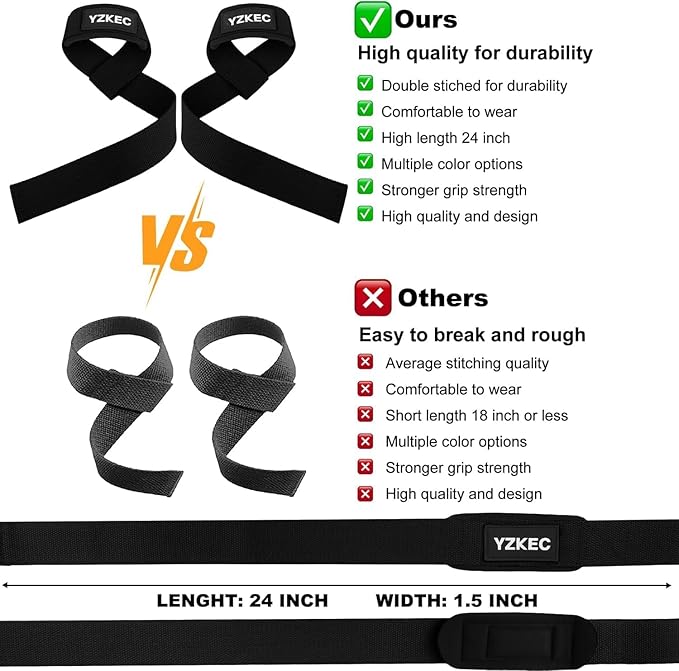 - 【Non-slip & Enhanced Grip】Extended 21 inches high-quality lifting strap , comfortably wrap our lifting strap around the bar 2-3 times, which provides you with a strong grip and enables you to lift heavier weights . 1.4 inches wide weight lifting wrist strap is enough to increase contact with the contact surface. The weight lifting straps offer neoprene padding, preventing the straps from cutting your wrists when you lift heavy objects.