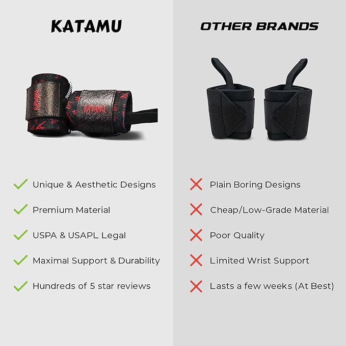 Katamu | Premium Wrist Straps | Wrist Support for Weighlifting, Powerlifting and Bodybuilding