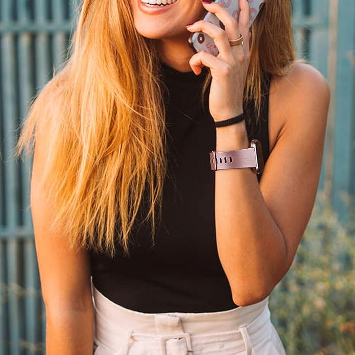 • Available in multiple colors and two sizes for Fitbit Versa 2 bands / Fitbit Versa bands / Fitbit Versa Lite bands women men, freely adjustable stainless steel buckle holds Versa sturdily. Each color is seemed like a brand new watch. Small Size fits for 5.5" - 7.1" (140mm-178mm) wrist. Large Size fits for 7.1" -8.7"(178mm-220mm) wrist.