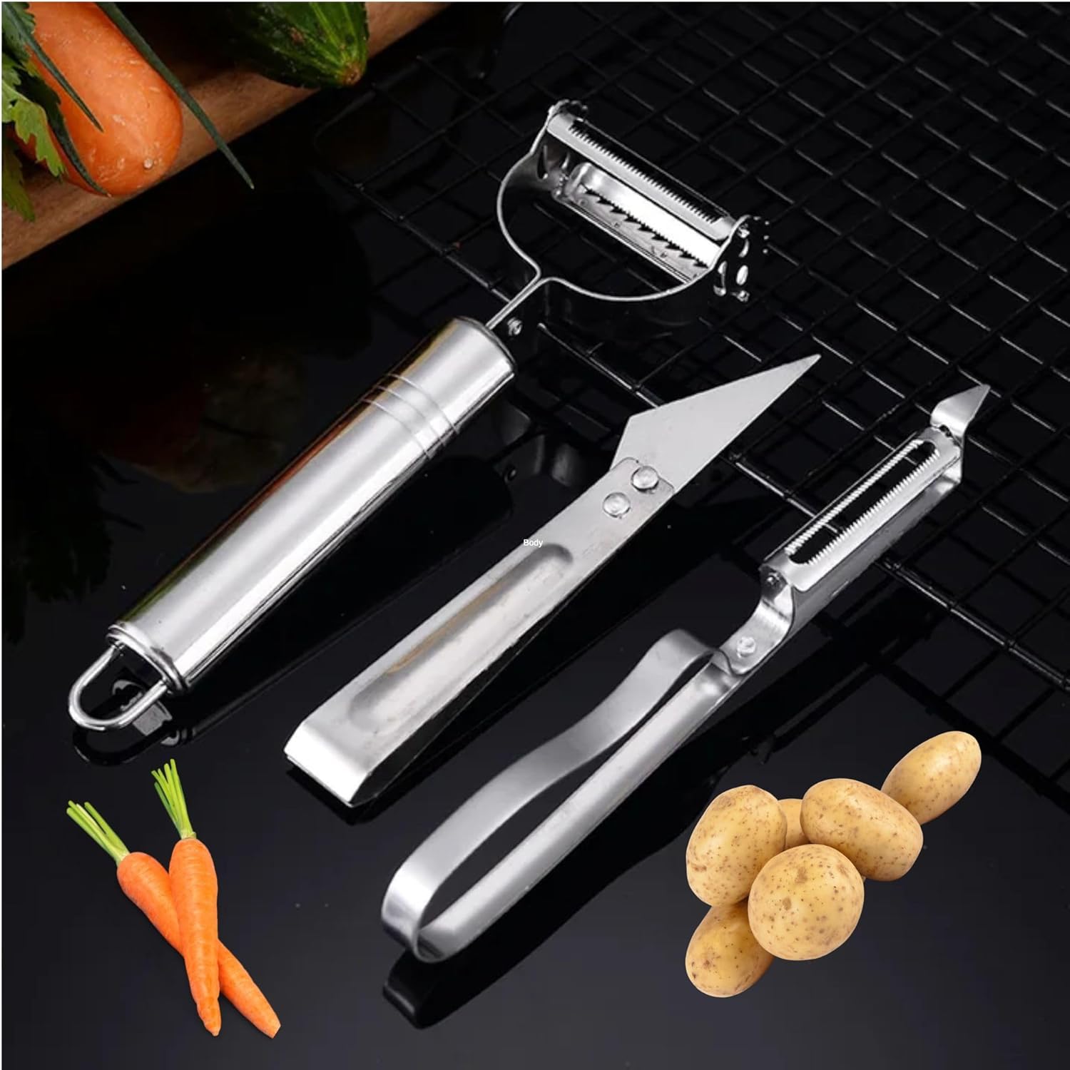 - Strainer with Vegetable Peeler: Our Collapsible Colander comes with 3 extra sets of peelers which can be used to peel the vegetables... The colander size is 40X26.5X4.3 cm.