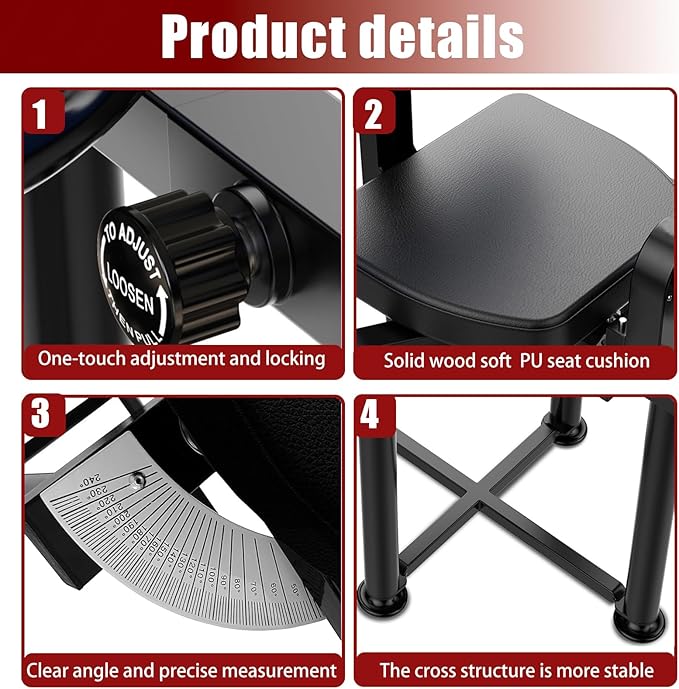 - 【Ergonomic Design】 The padded seat, knee and backrest cushions are made of PU leather, and the adjustable design of the backrest cushions provides excellent comfort and support for your upper back, helping you achieve great splits safely and flexibly