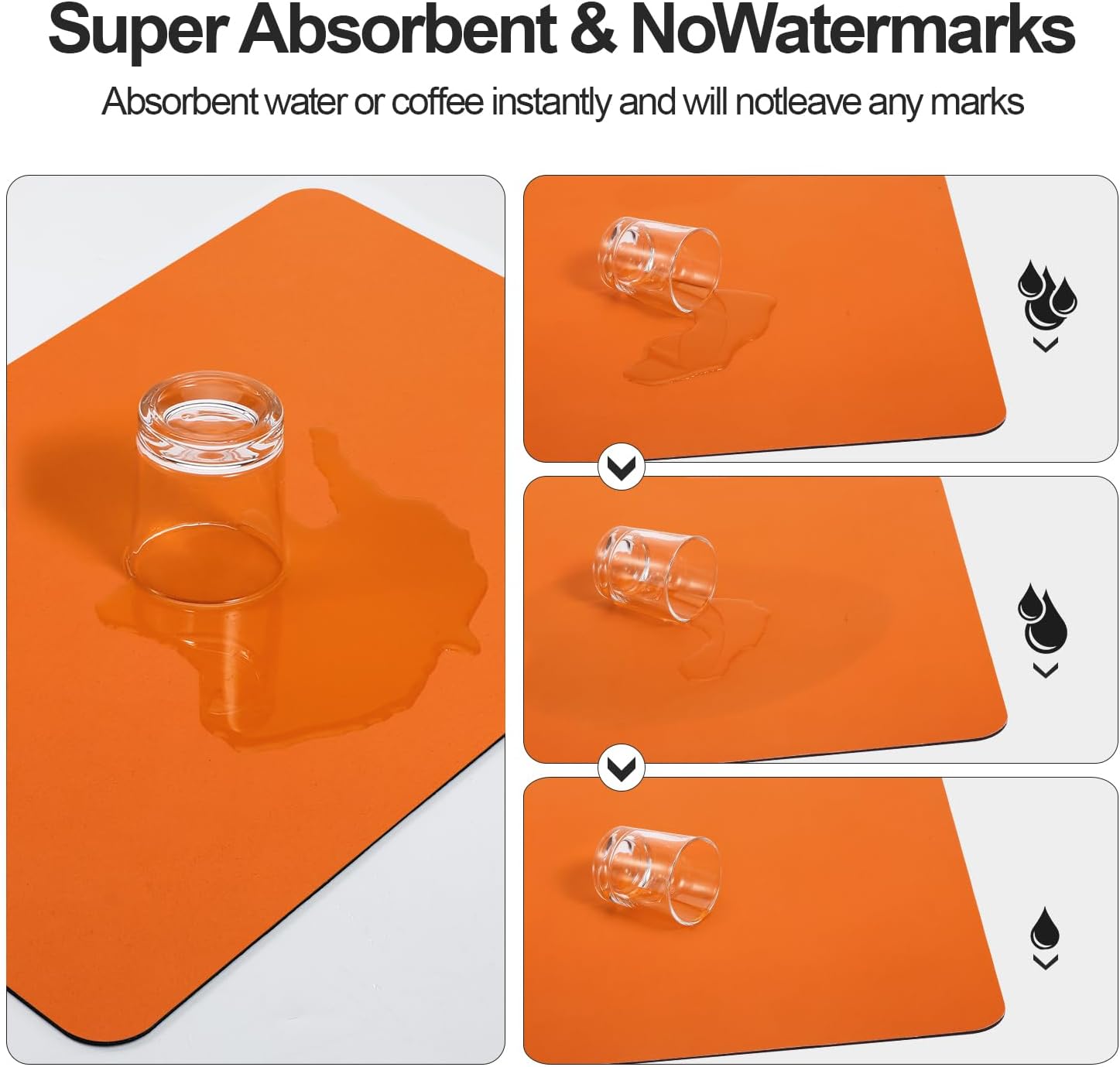 Dish Drying Mat for Kitchen Counter | Coffee Bar Mat for Countertops | Heat Resistant Drainer Mat with Non-slip Rubber Backed | Hide Stain Kitchen Absorbent Draining Mat | Orange 18"x32"