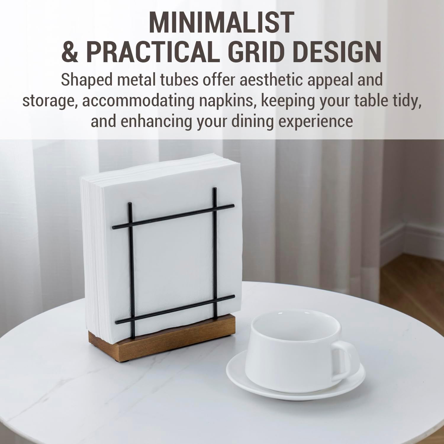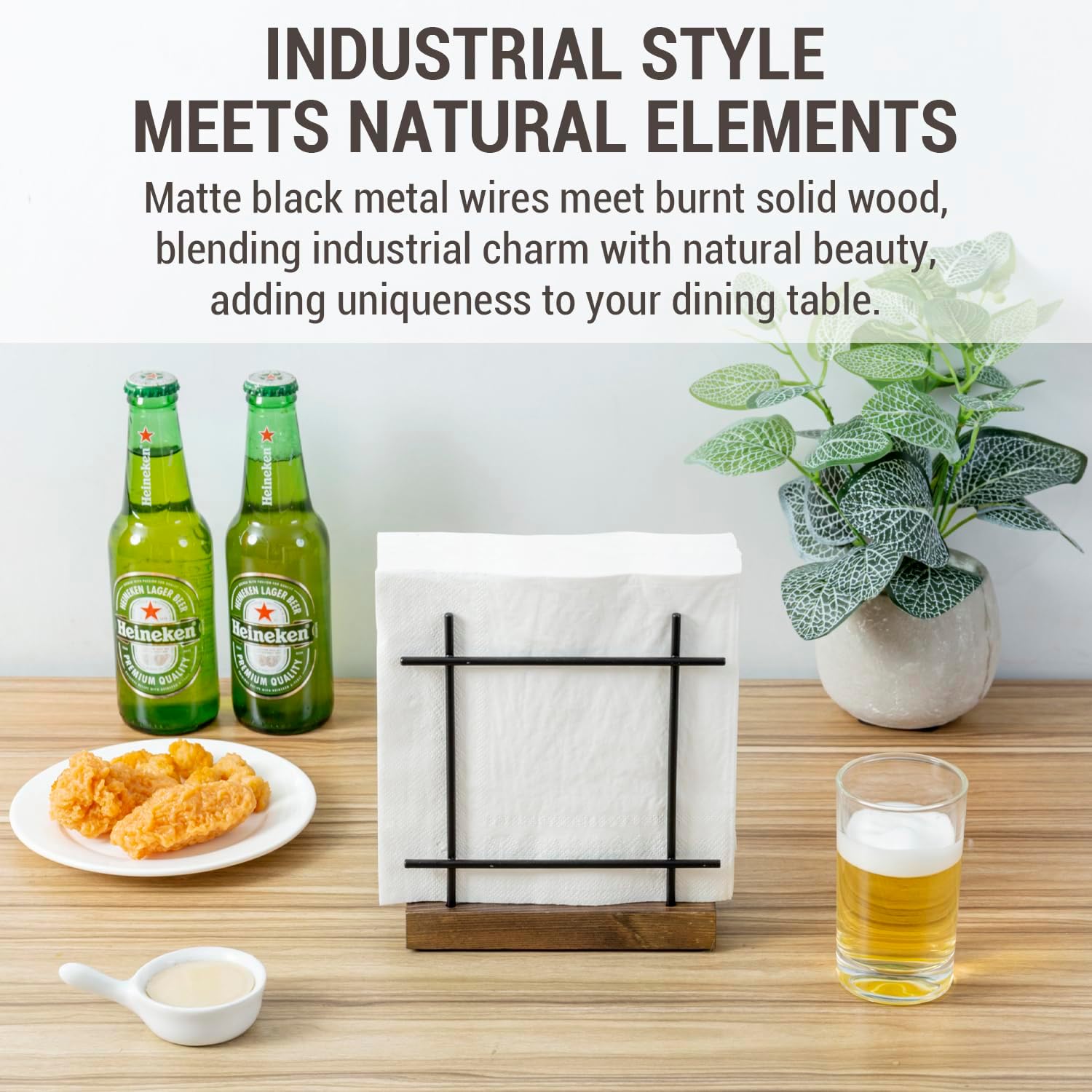 MyGift Napkin Holder for Table, Matte Black Metal Napkin Dispenser for Kitchen Dining with Rustic Burnt Brown Wood Base, Decorative Holders for Paper Mail Bills Home Decor
