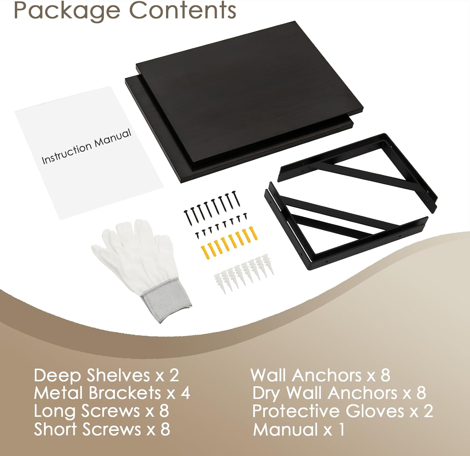 - 【Installing Is A Breeze】Easy-to-read instructions give you a step-by-step guide. All the necessary hardware is included, even those with minimal DIY skills can set it up in no time. Two types of expansion screws are provided for different wall materials