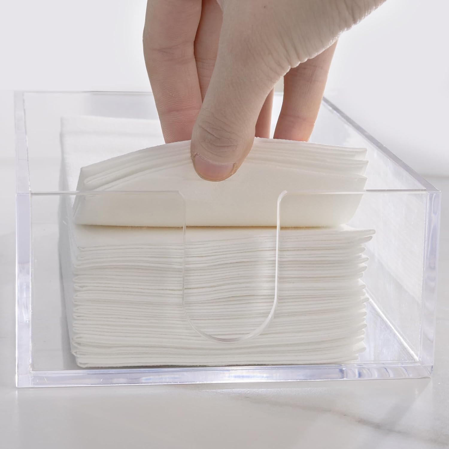 - Simple modern design: This clear napkin holder features crystal clear colors that match any decor, making the flat caddy a stylish storage space for your dining table, buffet, bar, or bathroom countertop.