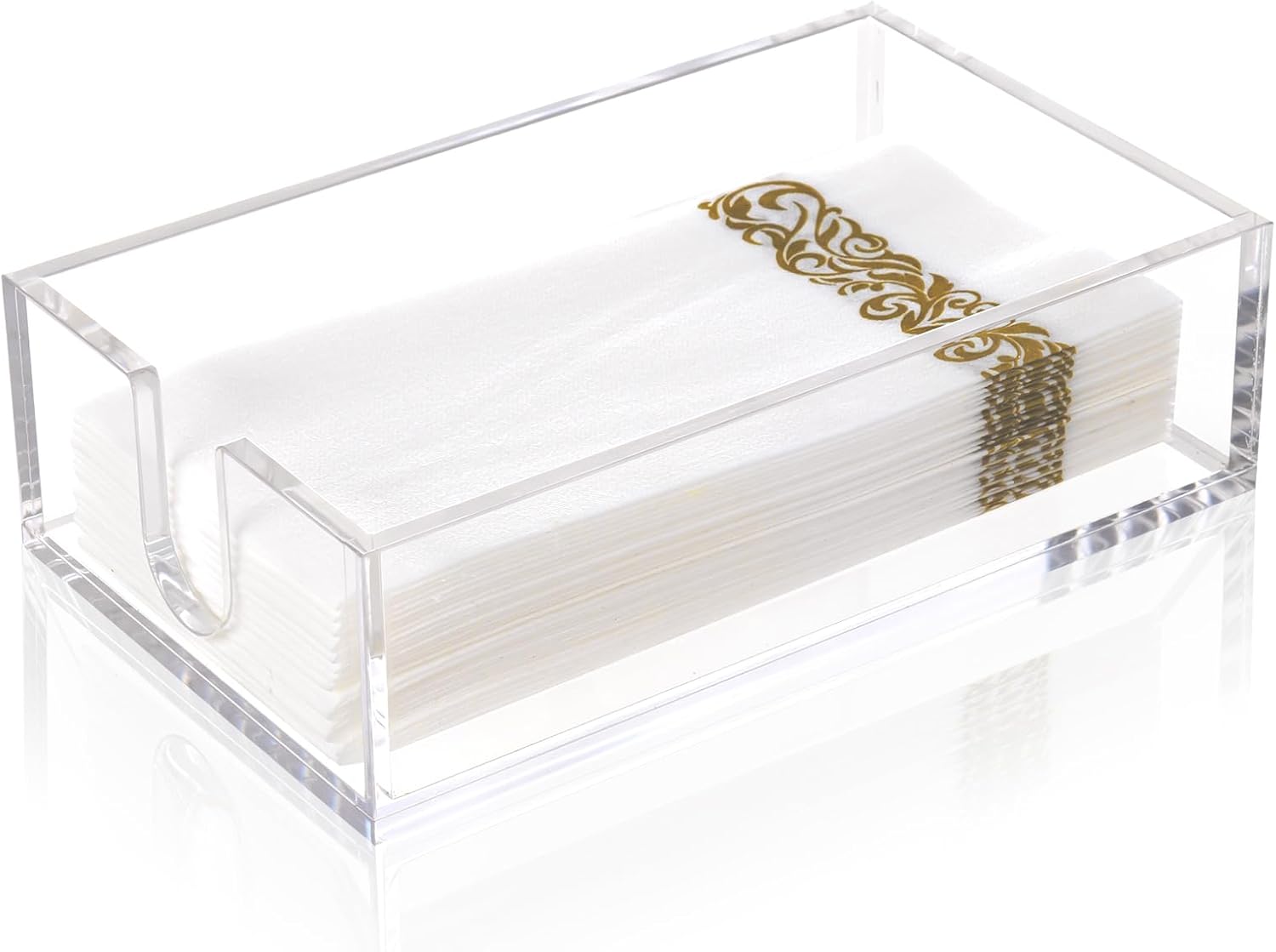 Rubtlamp 1Pcs Clear Napkin Holder Bathroom - 0.27Inch Thickness Bathroom Acrylic Guest Towel Holder - Acrylic Hand Towel Tray for Kitchen, Parties, Weddings, Party, Hotel (Clear, 9”X5.5”X2.5”)