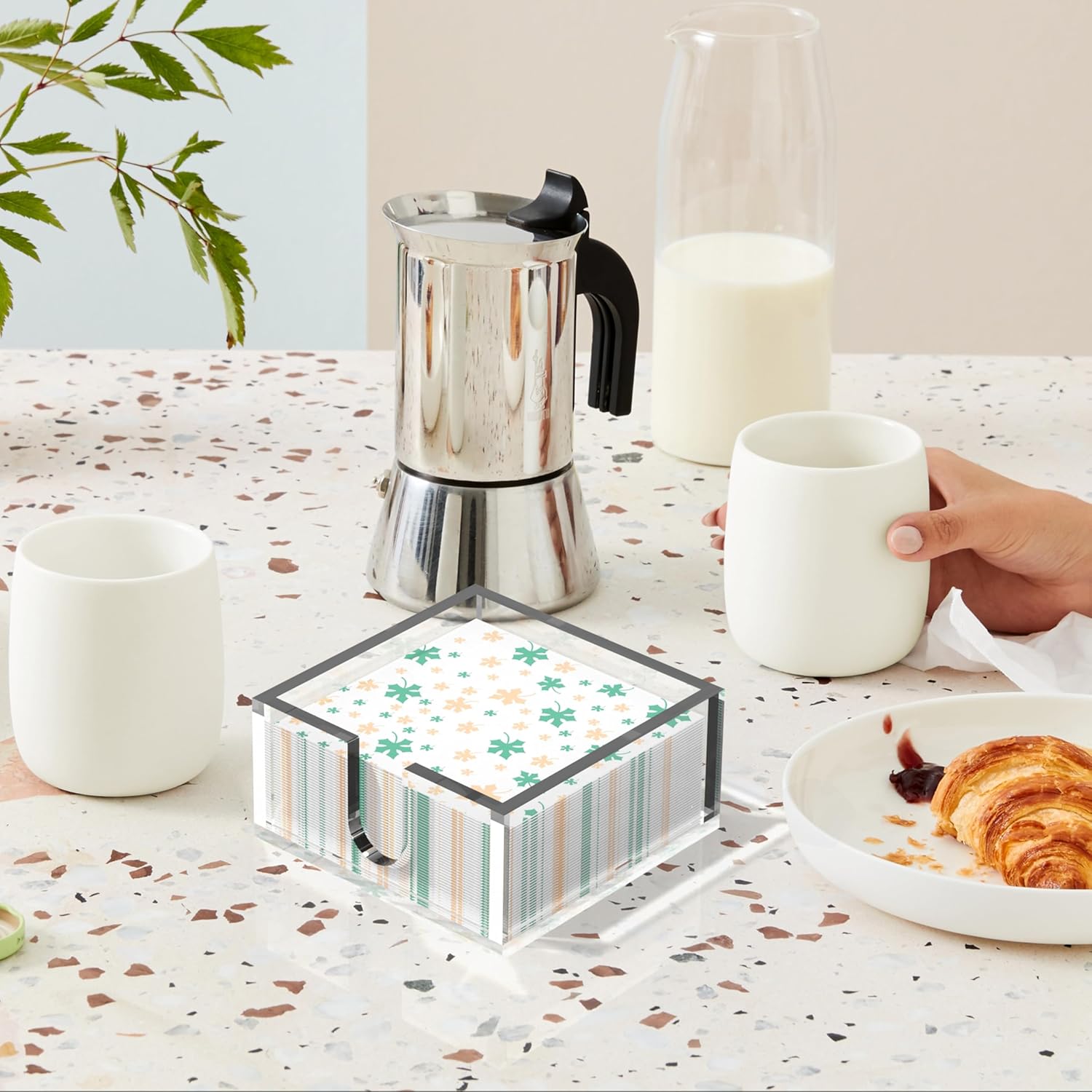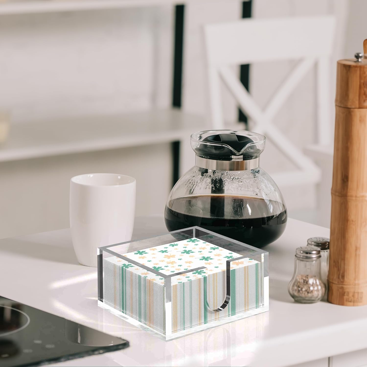 - Applicable size: The square napkin holder measures 5.3 x 5.3 x 2.4 inches, suitable for standard sized lunch napkins/dinner napkins or cocktail napkins/coasters/memos, etc.