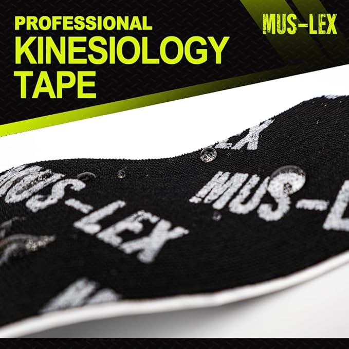 - MUS-LEX Professional Kinesiology Tape Waterproof & Sweat-Resistant: Reliable adhesion in all conditions. Durable Design: Maintains support during prolonged use. Breathable & Comfortable: Skin-friendly fabric for all-day wear. Strong Stabilization: Reduces muscle strain and supports joints effectively. Customizable Size: Easy to cut and apply to different areas. Multi-Purpose: Ideal for sports, recovery, and daily muscle care. Choose MUS-LEX for enhanced performance and dependable support without compromise.