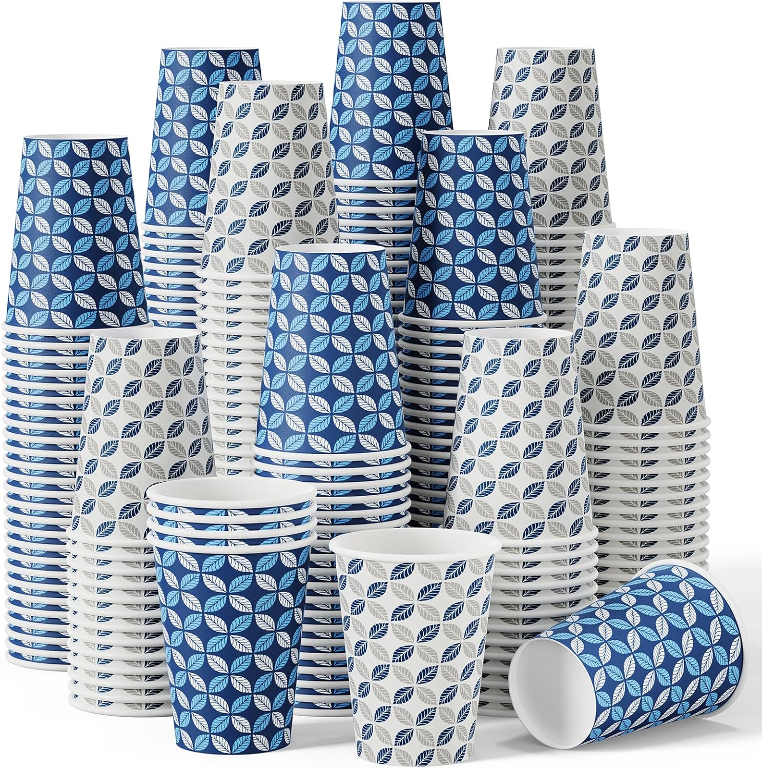 - 【Great Value】With 1000 paper cups in each pack (500 blue leaf print and 500 grey leaf print), this purchase offers great value. No washing is required, making it convenient for gatherings or everyday use