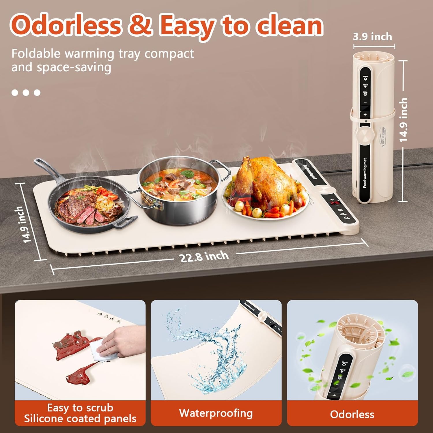 - 【Easy to Clean and Store】This food heating pad for food is made of high quality silicone material with high heat resistance and practicality, can withstand high temperatures and no odor when heating; nano-silicone coating on the surface of the food warmer mat is oil-proof, stain-proof, etc. It's very easy to clean, and you just need to wipe it with a rag after using it; the design of rolled up effectively saves space and Convenient storage