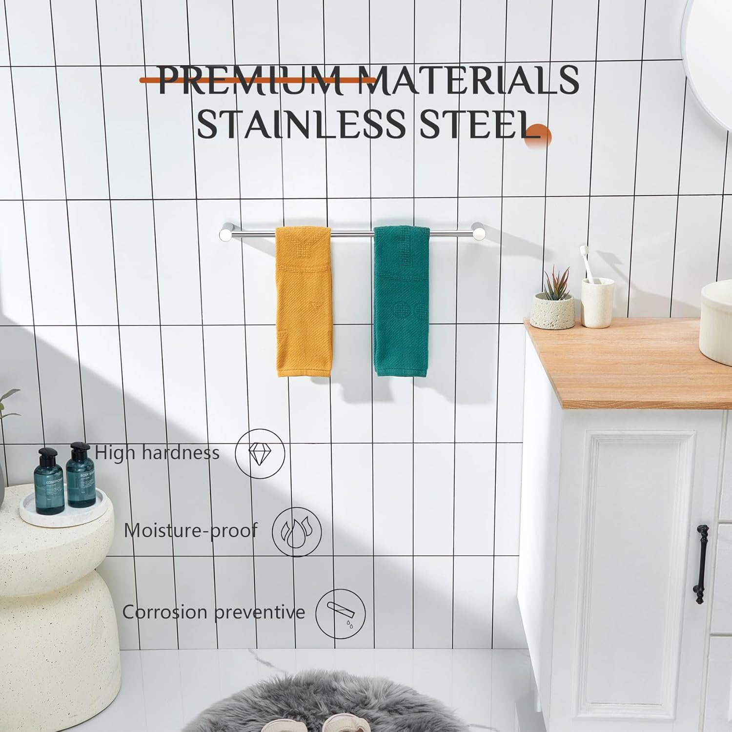 KOKOSIRI Towel Rack Chrome 24-Inch Towel Bar for Bathroom Wall Mount Single Rod Bathroom Lavatory Accessories Polished Stainless Steel, B4007CH-L24