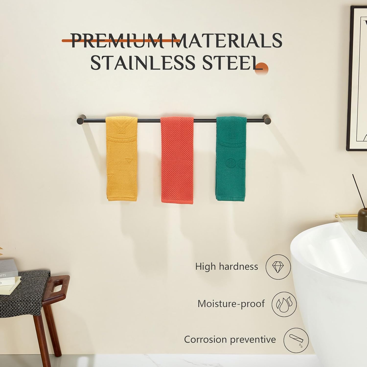 - ◄ OIL RUBBED BRONZE ► The bathroom towel holder is Oil Rubbed Bronze finish which is fingerprint-proof and water-proof. And the surface covering is resisting daily scratches, corrosion, and tarnishing
