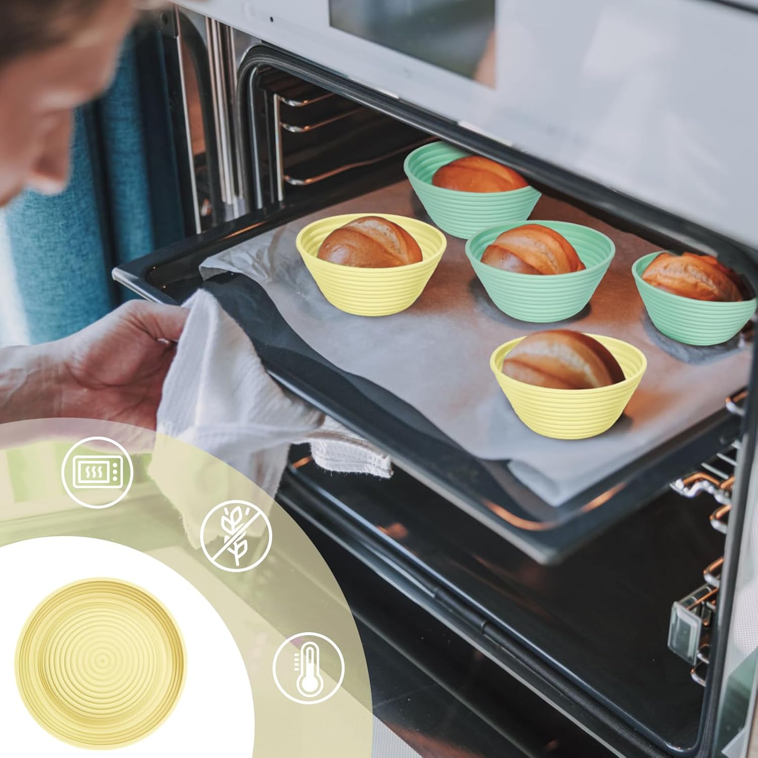 - Elevate Your Baking: Our premium silicone bread proofing baskets outshine traditional rattan ones. The sourdough starter kit is made from top-grade, BPA-free silicone, our bread baskets handle temperatures from -20°F to 440°F (-30°C to 226.15°C), ideal for fridge proofing and direct oven use. Safe, durable, and versatile—transform your baking experience today