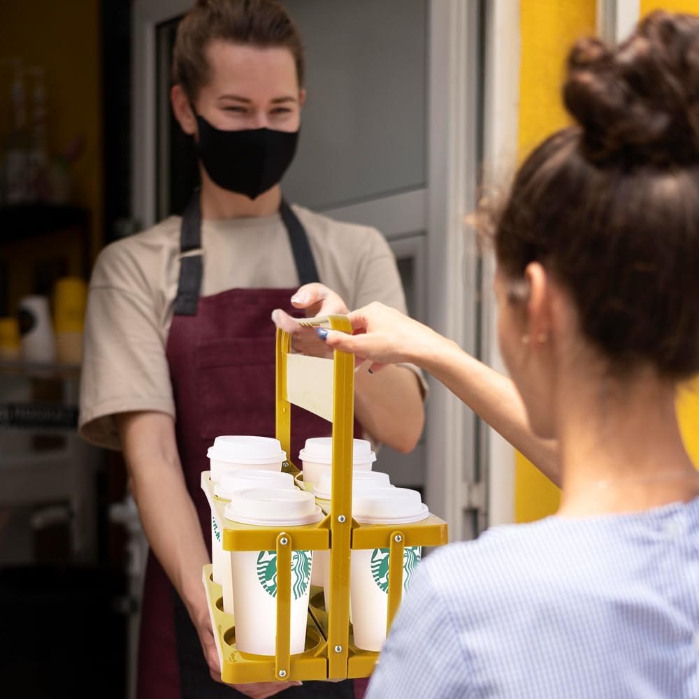 Reusable Drink Carrier with Handle for Doordash, Grubhub, Portable Cup/Coffee Holder Accessories for Delivery, Foldable Drinks Caddy with Tray, Car Durable Plastic Festive Bottle, Vacation