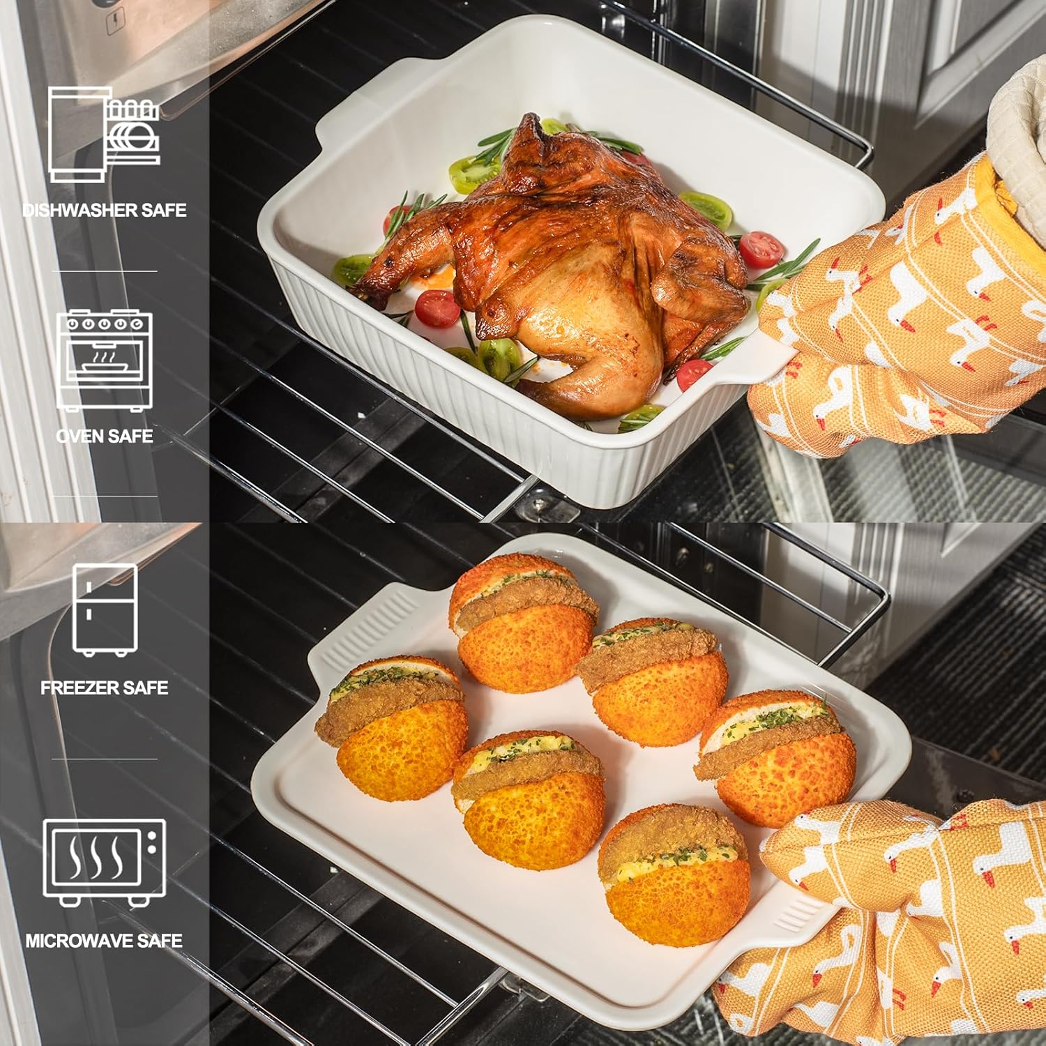 - HIGH-QUALITY MATERIAL: Crafted from durable ceramic and fired at high temperatures, this ceramic baking pan can withstand both high and low temperatures. It’s safe for use in the refrigerator, microwave, and oven, making heating food a breeze. The robust design ensures it won’t easily break, providing long-lasting use.