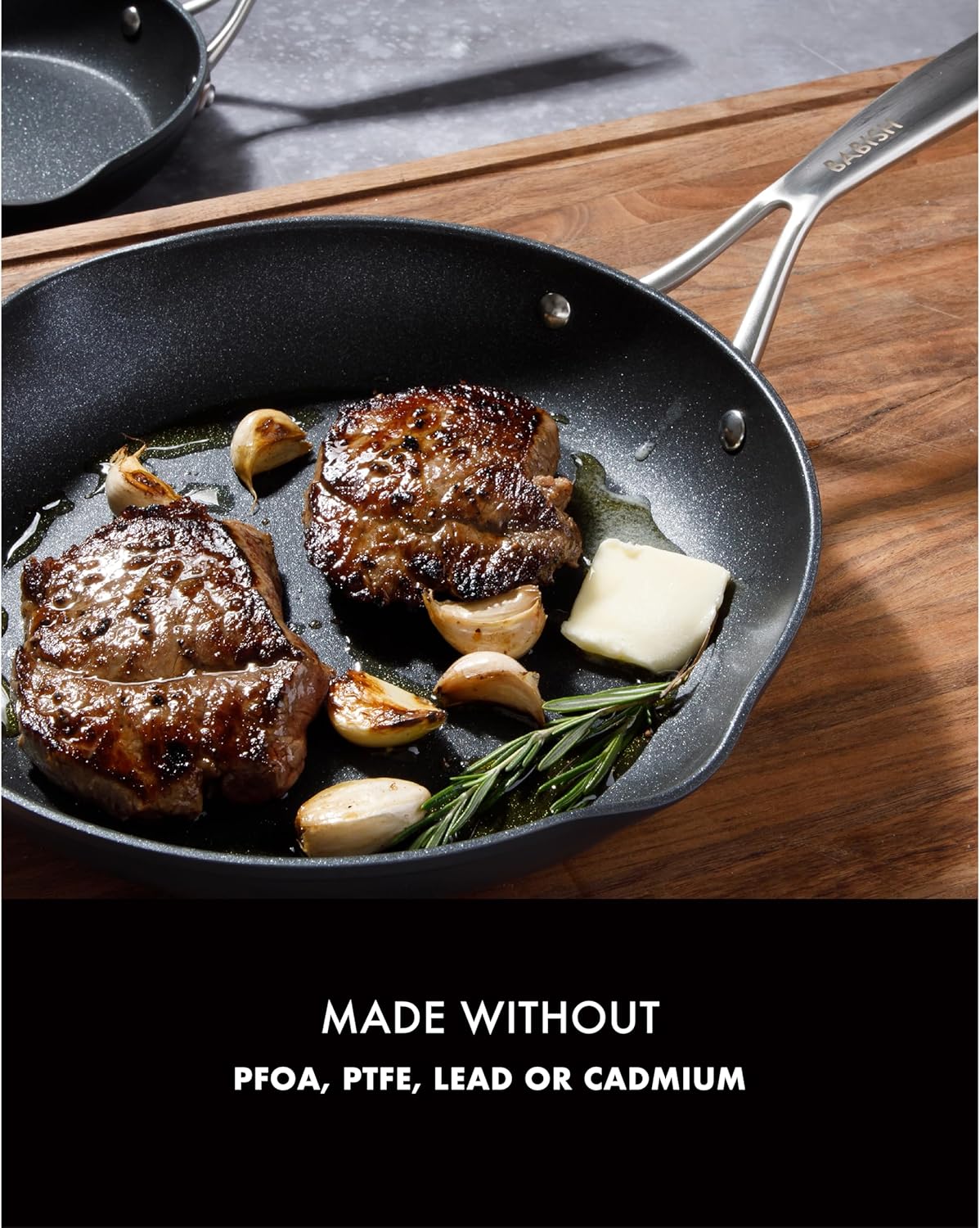 - WHAT'S IN THE BOX: Two nonstick hard-anodized aluminum frying pans (8 inches and 10 inches)
