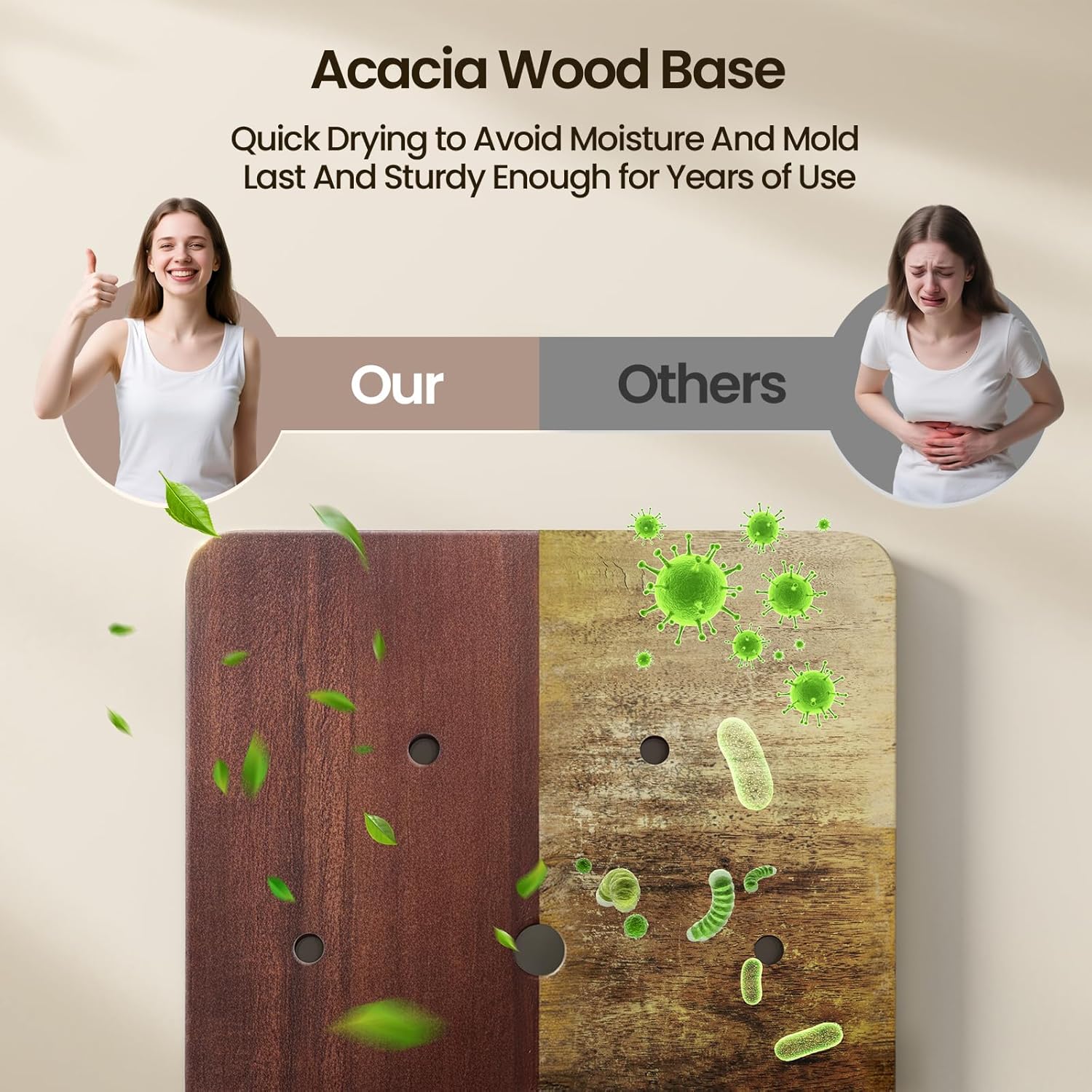 - Our kitchen utensil holder made with an acacia wood base and matte black metal wire construction, featuring drainage and ventilation holes to keep your utensils clean and hygienic. The smooth, flat base protects your countertop from scratches.