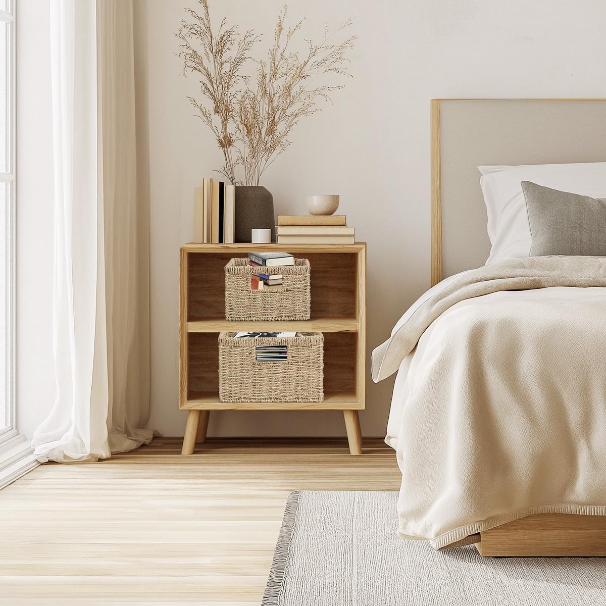 Wicker Storage Basket, Rectangular Seagrass Baskets with Handles, Handwoven Decorative Wicker Basket for Shelves, Bedroom, Set of 2, Large and Small (Natural Seagrass)