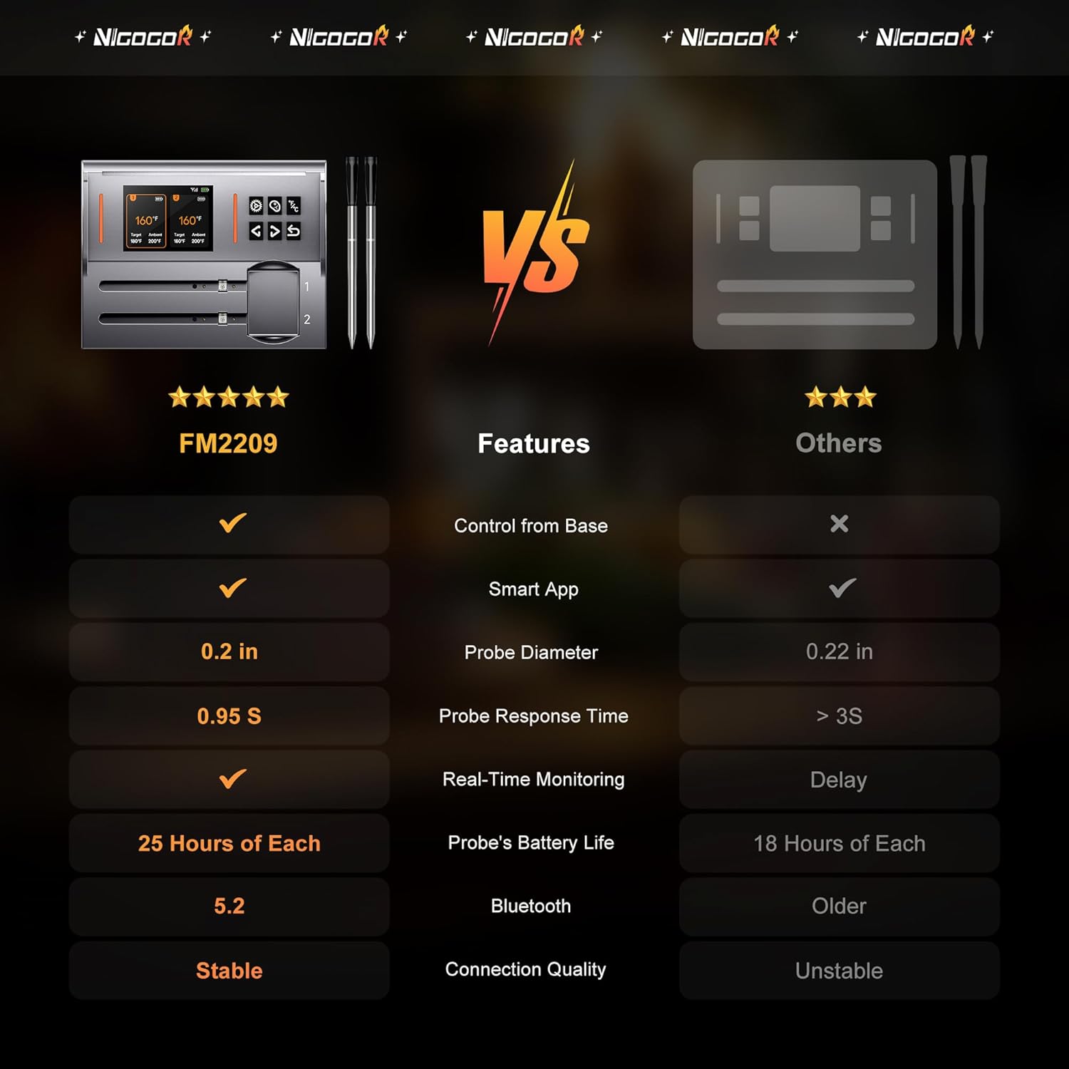 - Wireless Freedom & Real-Time Monitoring: 100% wire-free meat wireless thermometer with dual probes – monitor cooking progress anytime via free iOS/Android app, 0.95s fast response. Perfect for indoor/outdoor grilling, smoking, and overnight roasting.