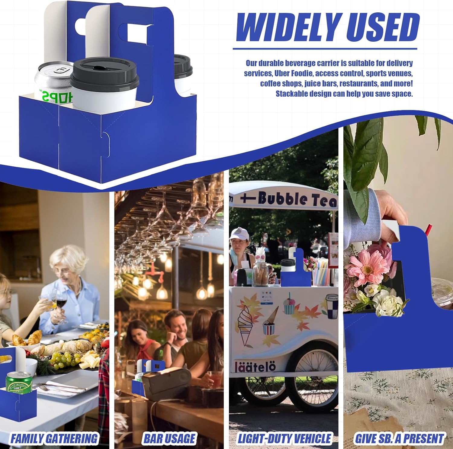 - Drink Carrier for Delivery: Drink carrier trays are suitable for coffee shops, grocery stores, juice bars, snack bars, bars, dessert shop, takeaway restaurants