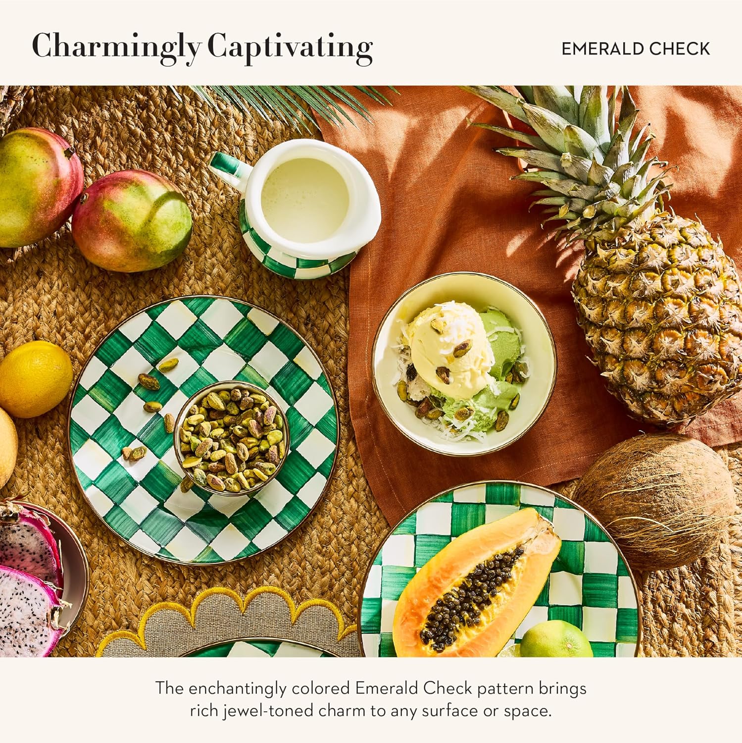 MACKENZIE-CHILDS Enamel Creamer, Creamer Dispenser with Pour Spout, 14-Ounce Capacity, Green-and-White Emerald Check