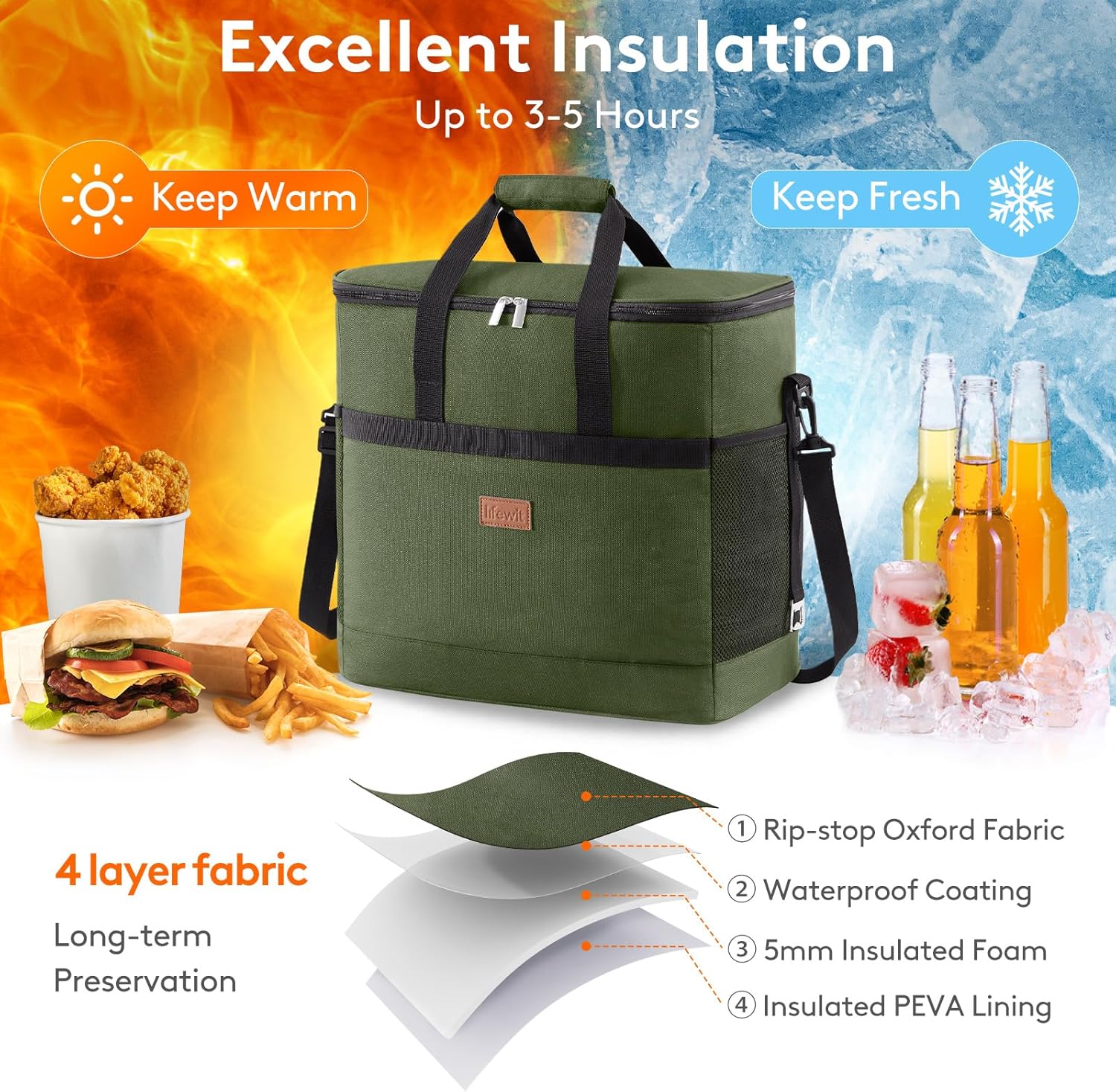 Lifewit Cooler Bag 30/50/60 Cans Collapsible and Insulated Large Lunch Bag Leakproof Soft Cooler Portable Tote for Camping/BBQ/Family Outdoor Activities