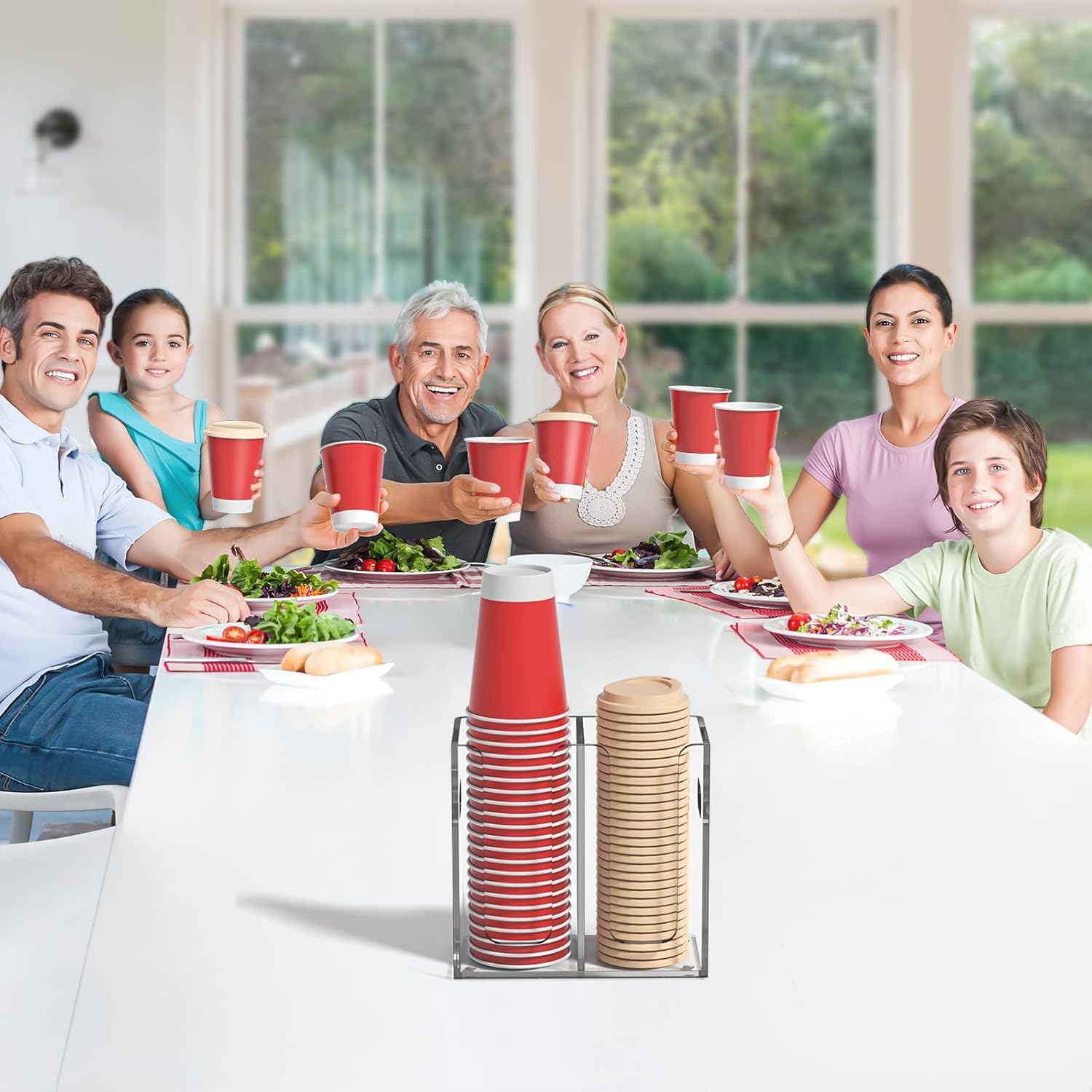 WINFFOR Disposable Cup Organizer Dispenser - 2 Compartments Clear Acrylic Cup and Lid Holder with Handles Plastic Cup Dispenser Countertop Paper Cup Holder for Coffee Bar House Party Essentials