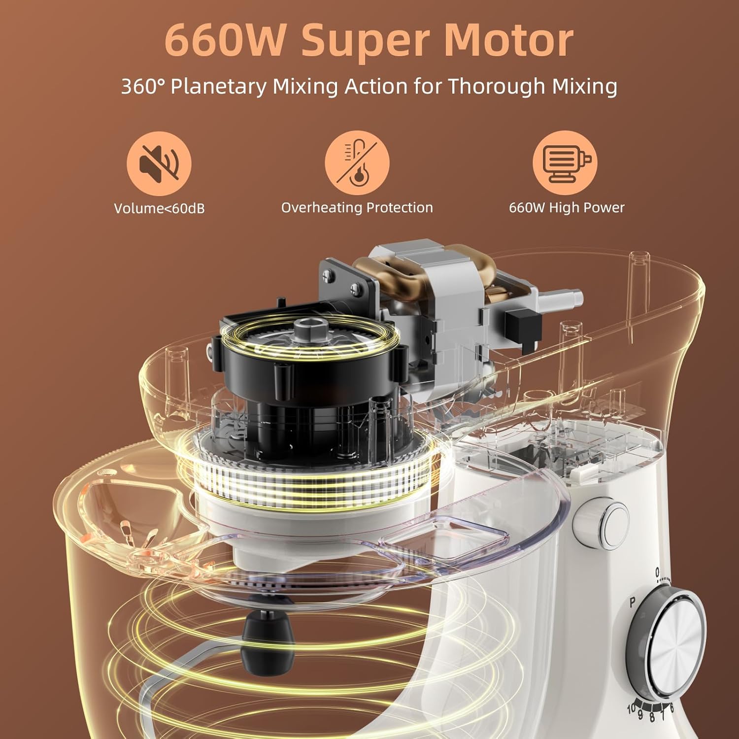 Electric Stand Mixer,10 Speeds Tilt-Head Food Mixer, 3-IN-1 Kitchen Mixer for Daily Cooks with Dishwasher-Safe 6.5 QT Bowl,Dough Hook, Beater, Whisk (Almond Cream)