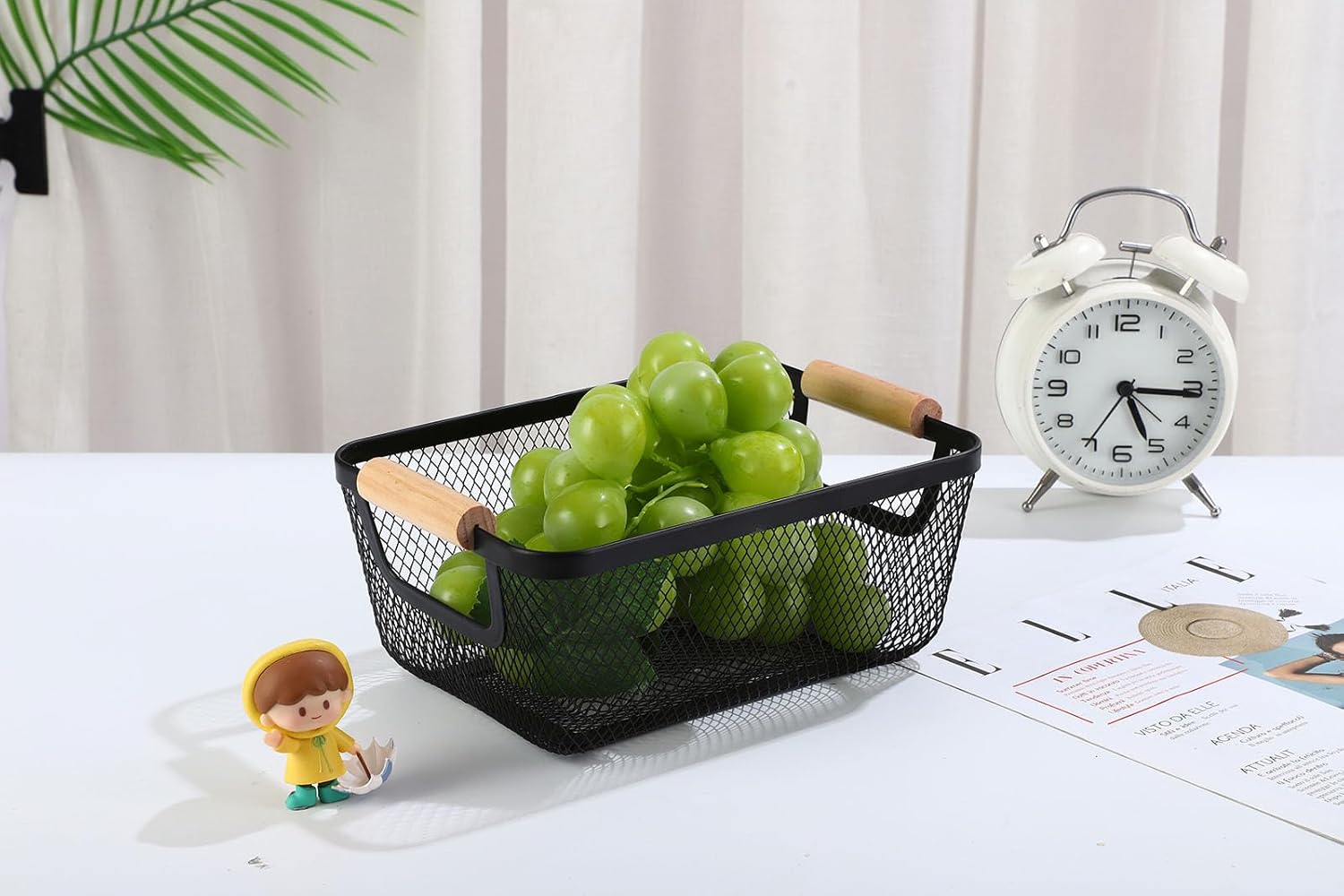 - Basket Dimensions: 9 x 6.7 x 3.94 inch / 23 x 17 x 10 cm (L x W x H). Material: metal + wooden. Include: 1pcs metal mesh wire steel basket.
